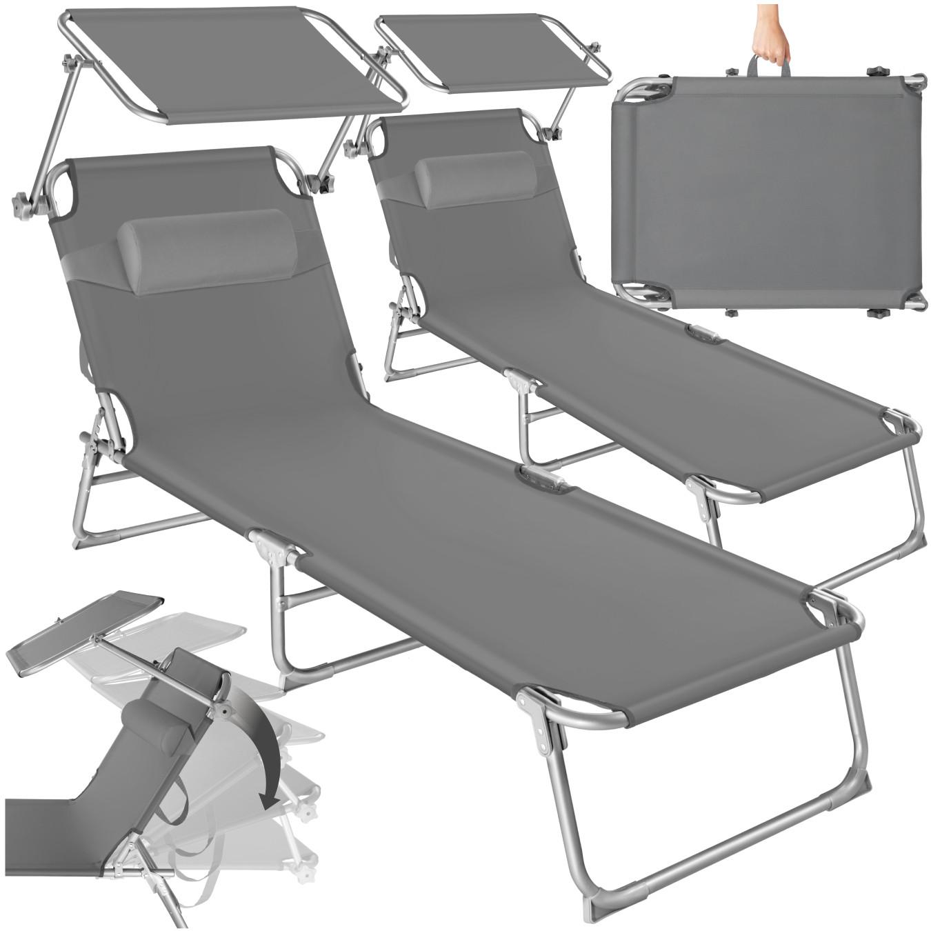 Tectake, 2er Set Gartenliege Chloé klappbar stufenlos verstellbares Sonnendach