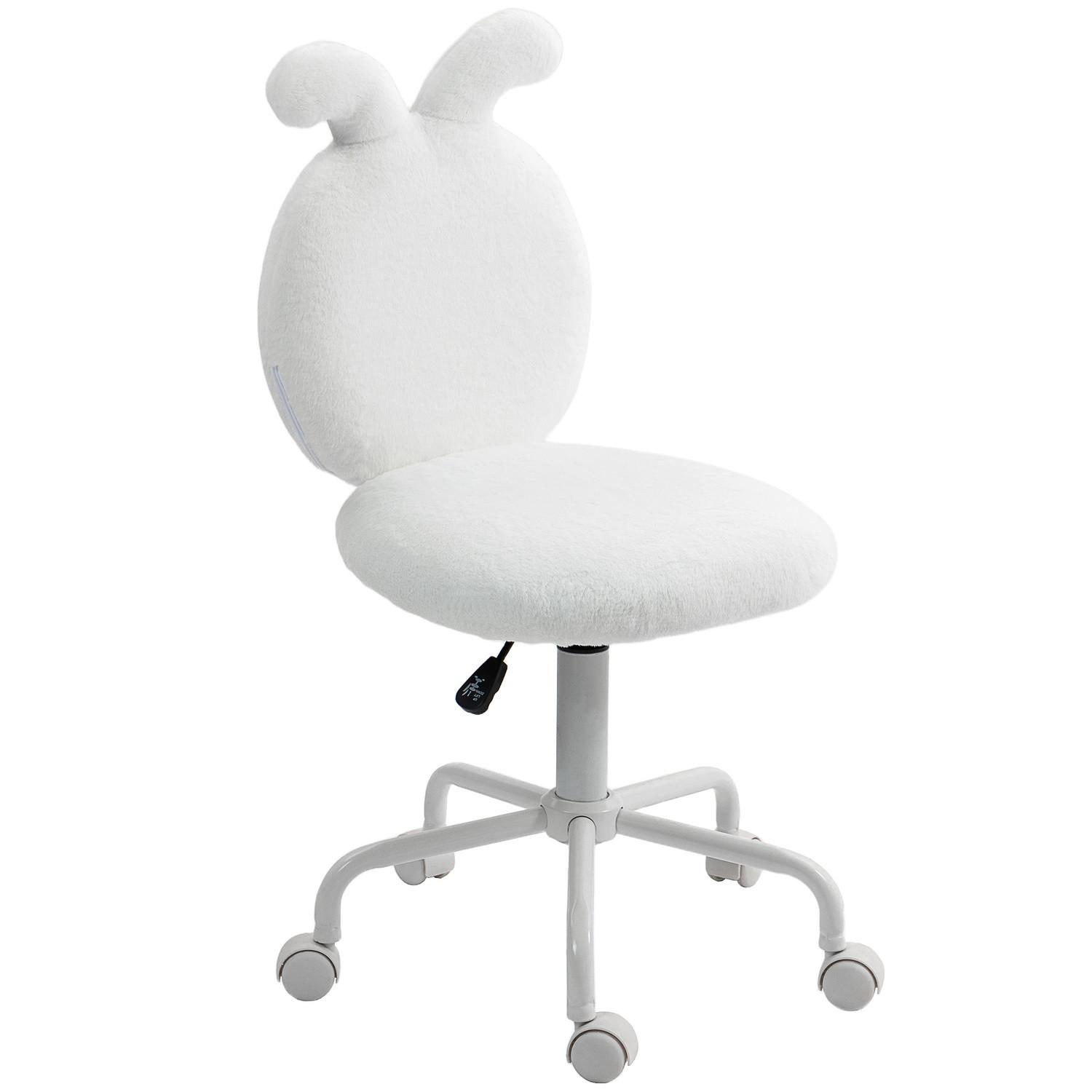 Northio Bürostuhl Schreibtischstuhl mit Hasenohren, Höhenverstellbar Kosmetikstuhl mit Samtoptik, Drehstuhl Schminkstuhl für Schlafzimmer, Weiß Aosom