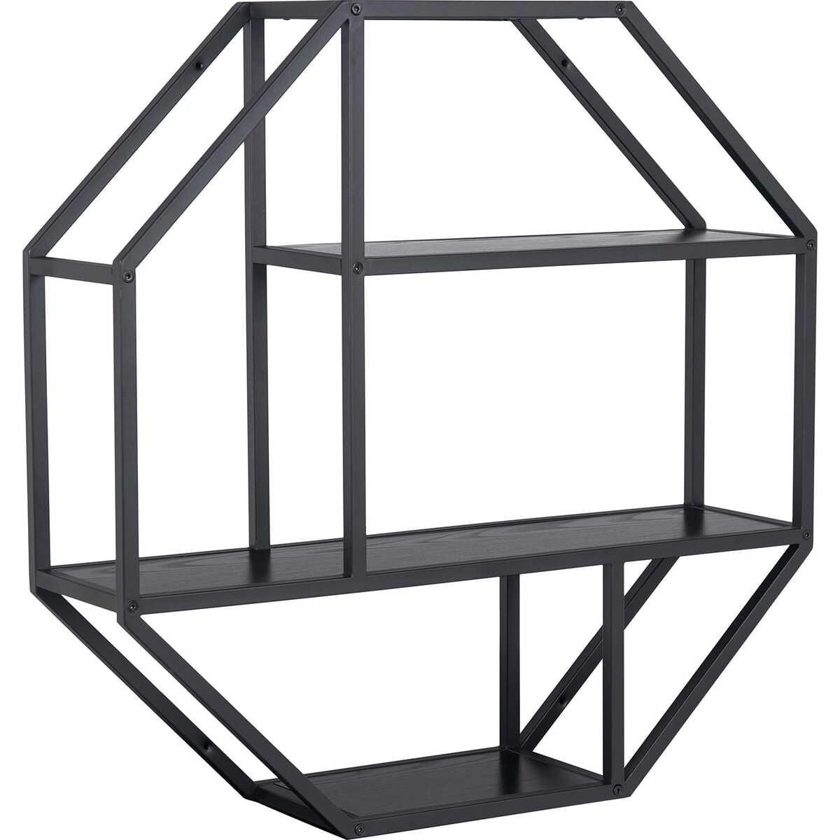 Wandregal Multiple Bronx acteckige Form 3 Böden Melamin Esche Schwarz Gestell Metall pulver- beschichtet rau Schwarz matt 77x20x77 cm0