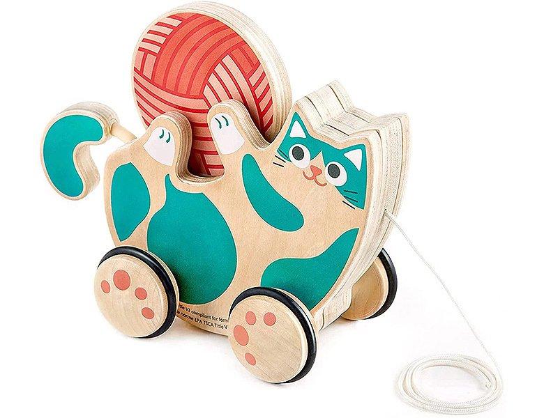 Das rollende Rassel-Kätzchen ist ein entzückendes Holzspielzeug, das speziell für Kleinkinder ab 1 Jahr entwickelt wurde. Mit weichen Gummireifen hinterlässt es keine Kratzer auf dem Boden und eignet sich perfekt zum Ziehen durch das Zuhause. Das Wollknäuel kann separat herausgenommen werden, für vielfältigen Spielspass. Mit den Abmessungen von 21 x 9,3 x 16,7 cm passt es in jedes Kinderzimmer und kann einfach überallhin mitgenommen werden.