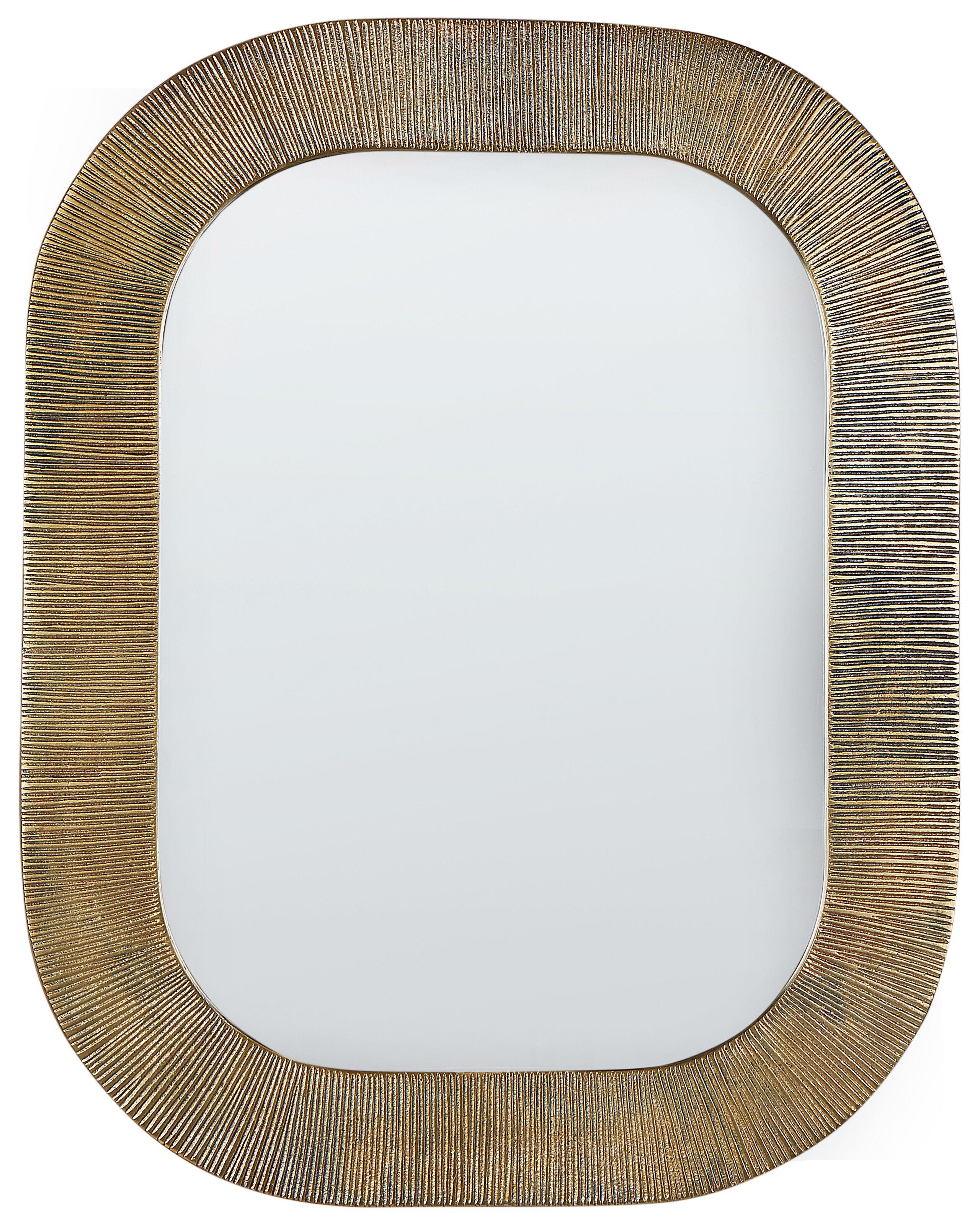 Rechteckiger Hängespiegel mit goldenem Metallrahmen. Bereichern Sie Ihre Einrichtung mit diesem einzigartigen Rahmenspiegel. Sein breiter Rahmen besteht aus langlebigem Aluminium, das mit seiner handwerklichen Schönheit und seinem antiken Look garantiert jeden verzaubert. Er eignet sich nicht nur als Hingucker, sondern kann auch als praktischer Begleiter beim Schminktisch oder in der Garderobe dienen. Platzieren Sie ihn in kleinen oder grossen Räumen, um diese zu verschönern, optisch zu vergrössern und zu erhellen. Ein unübertreffbares Must-have für jedes Schlaf-, Wohn- oder Esszimmer sowie für jeden Eingangsbereich.
