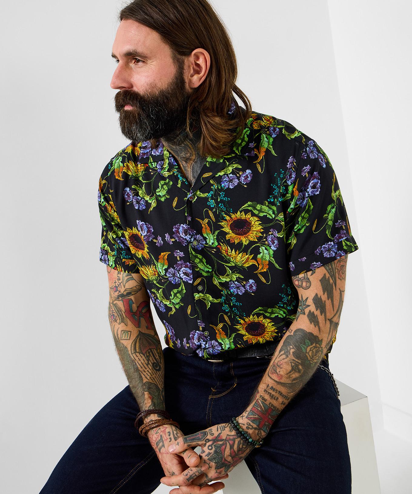 Das Sonnenblumenmuster verleiht diesem Hemd eine freundliche, sommerliche Ausstrahlung.
