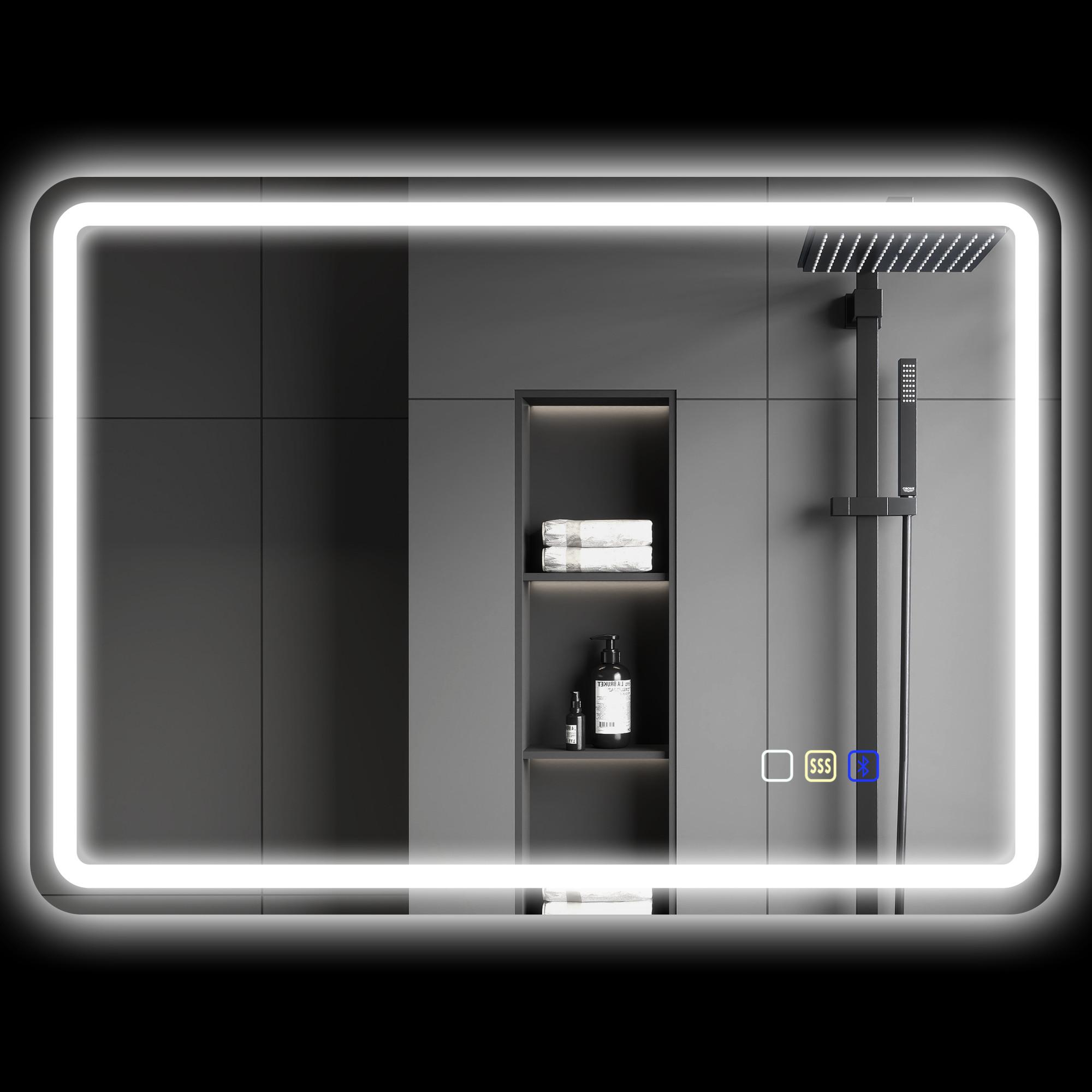 Optimieren Sie Ihre Morgenroutine mit dem intelligenten HOMCOM LED-Spiegel! Mit anpassbarer Helligkeit und drei Lichttemperaturen sorgt dieser Badezimmerspiegel stets für die richtige Stimmung. Das eingebaute Anti-Beschlags-Pad garantiert jederzeit klare Sicht und dank Bluetooth spielt der Spiegel Ihre Lieblingshits, während Sie sich vorbereiten. Mehr als ein Spiegel: Ein echtes Lifestyle-Upgrade.