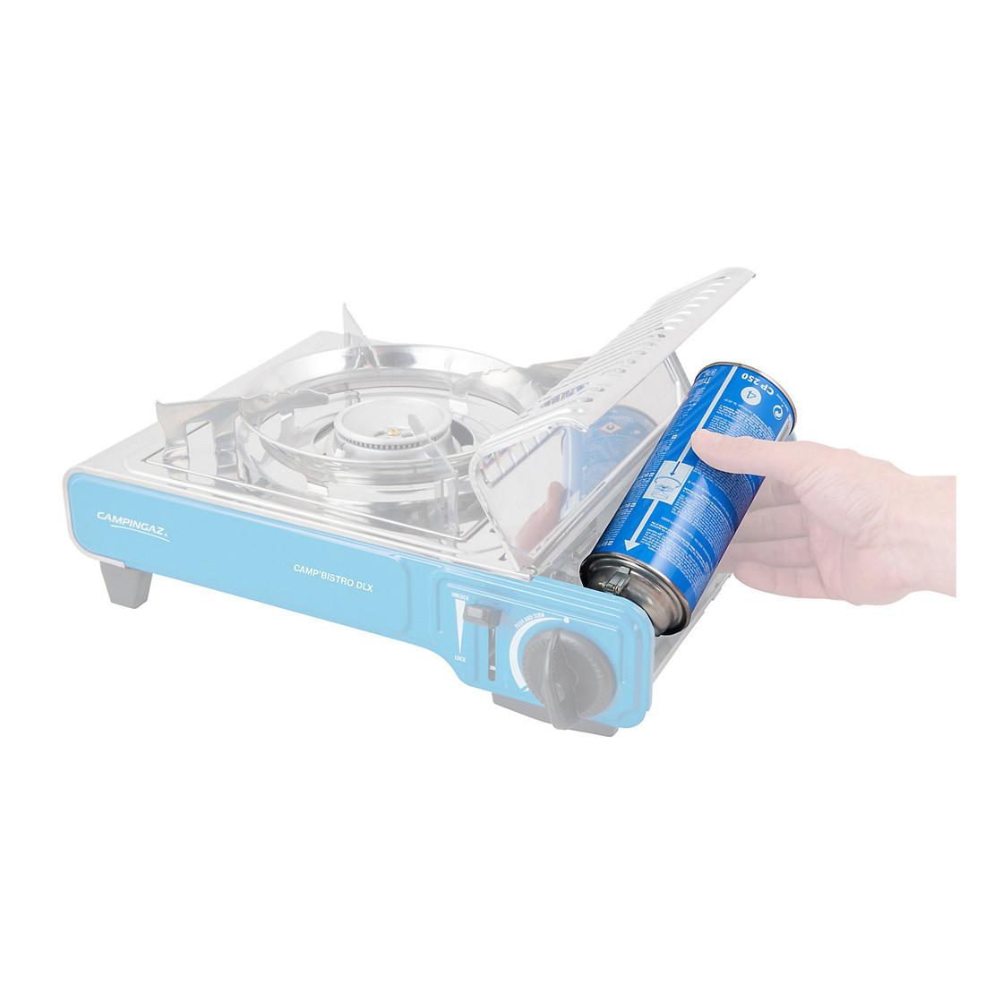 Produktinformation, Ventilkartusche mit Isobutangas, Für CAMPINGAZ-Geräte der Linie BISTRO und FESTIVIO, Sicherheitsventil für einfachen und sicheren Anschluss, Niedrigste Einsatztemperatur: 5 °C