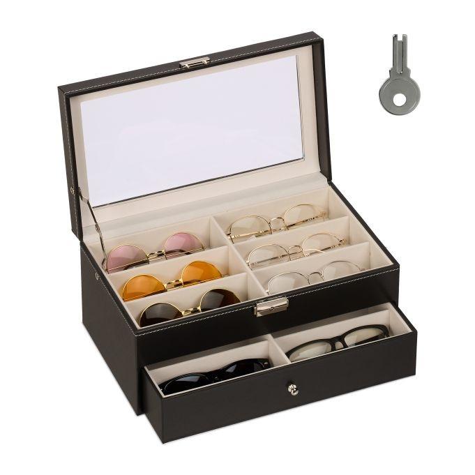Bewahren Sie Ihre Sonnenbrillen sicher und stilvoll auf mit unserem Sonnenbrillen-Organizer in Lederoptik mit schützendem Samtfutter und elegantem Display. Perfekt für die Präsentation und den Schutz Ihrer Brillensammlung.