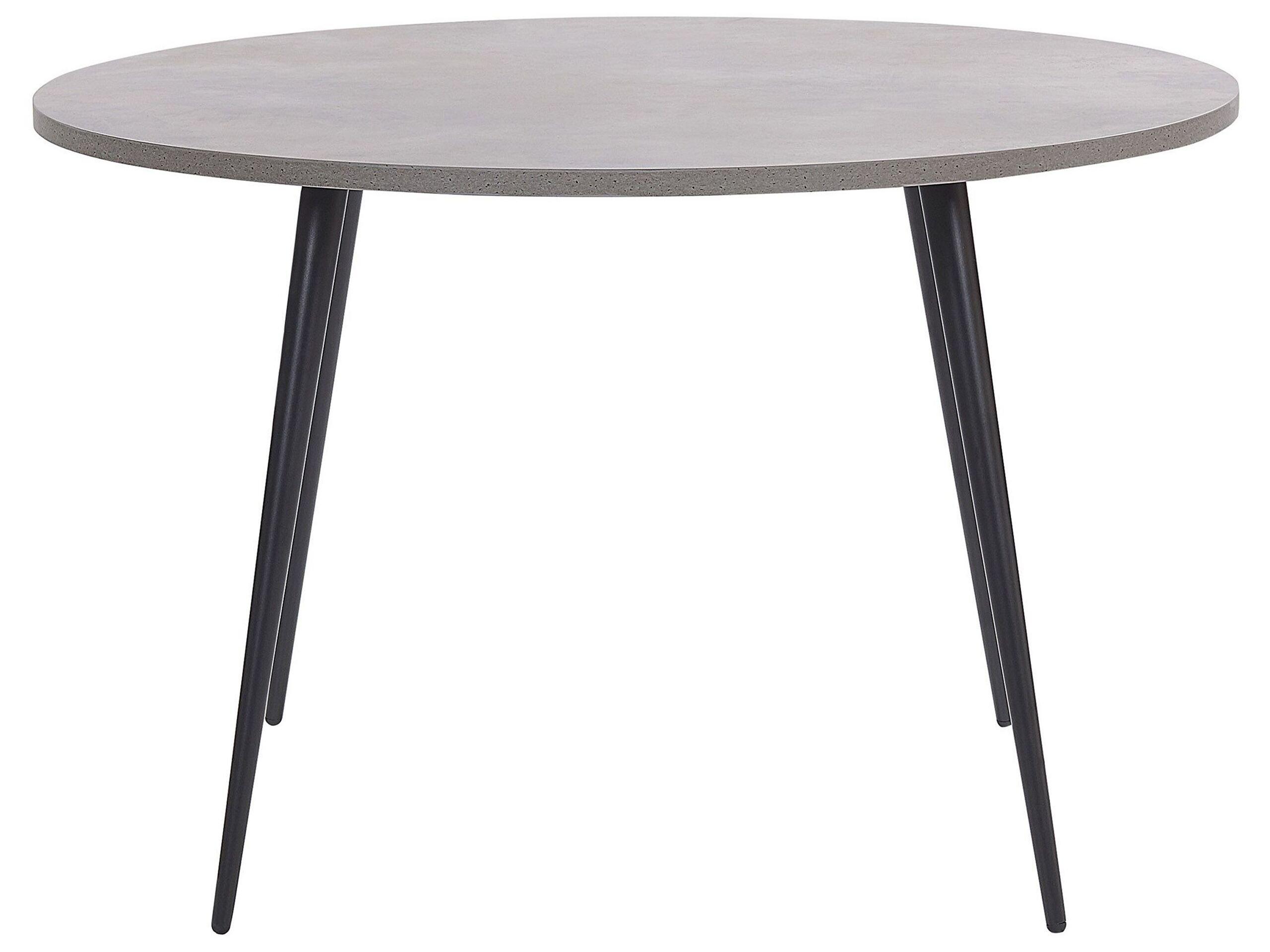 Runder Tisch in edler Optik. Ein Möbelstück, das jedem Innenraum einen eleganten Akzent verleiht. Die runde Tischplatte in grauer Betonoptik wird sich wunderschön mit edlen Vasen, silbernen Dekoartikeln und weiteren Dekoaccessoires komponieren. Die schmalen, schwarzen Metallfüsse verleihen dem Look des Tisches eine zusätzliche Leichtigkeit.