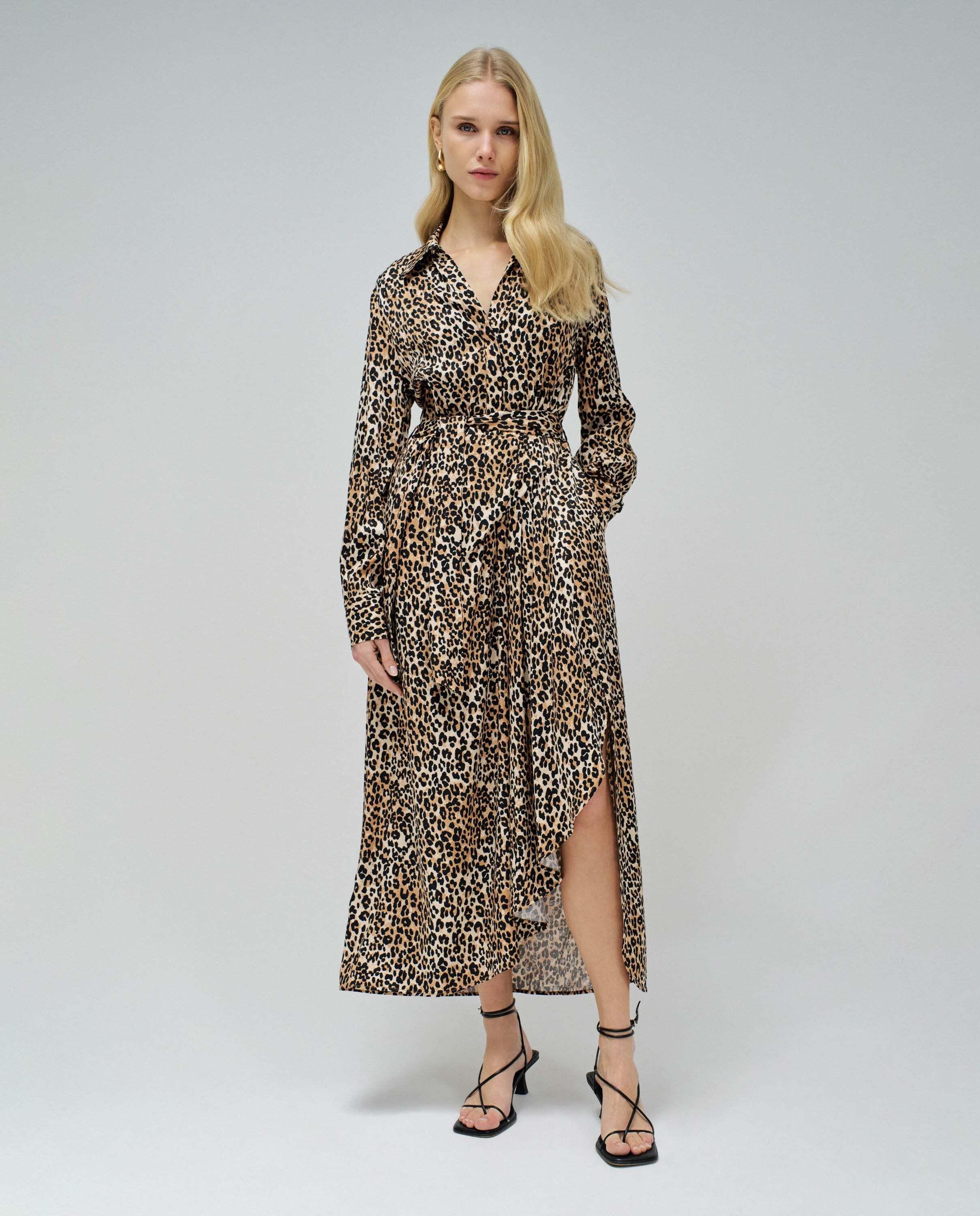 Dieses Midikleid kombiniert klassische Eleganz mit einem modernen Touch dank des Leopardenprints in der edlen Farbe Dark Pearl. Das Design schafft eine harmonische Balance zwischen schick und lässig und eignet sich perfekt für Büro, Abendessen oder besondere Anlässe.