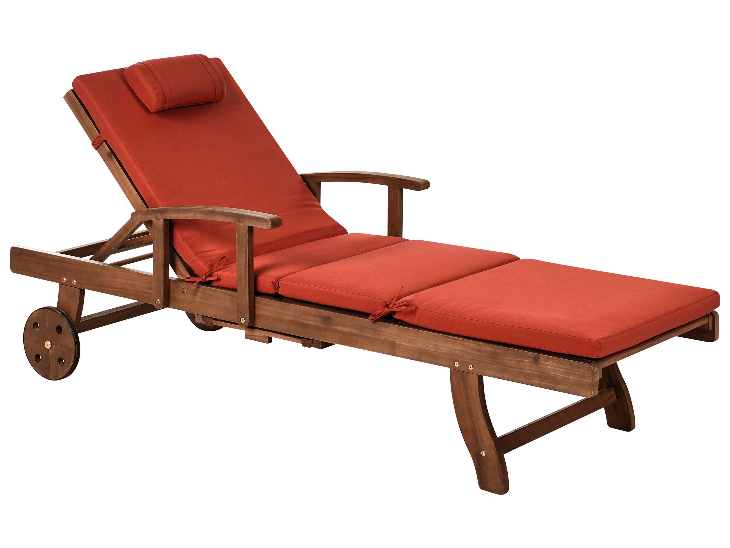 Beliani Sonnenliege mit Kissen aus Akazienholz AMANTEA PREMIUM