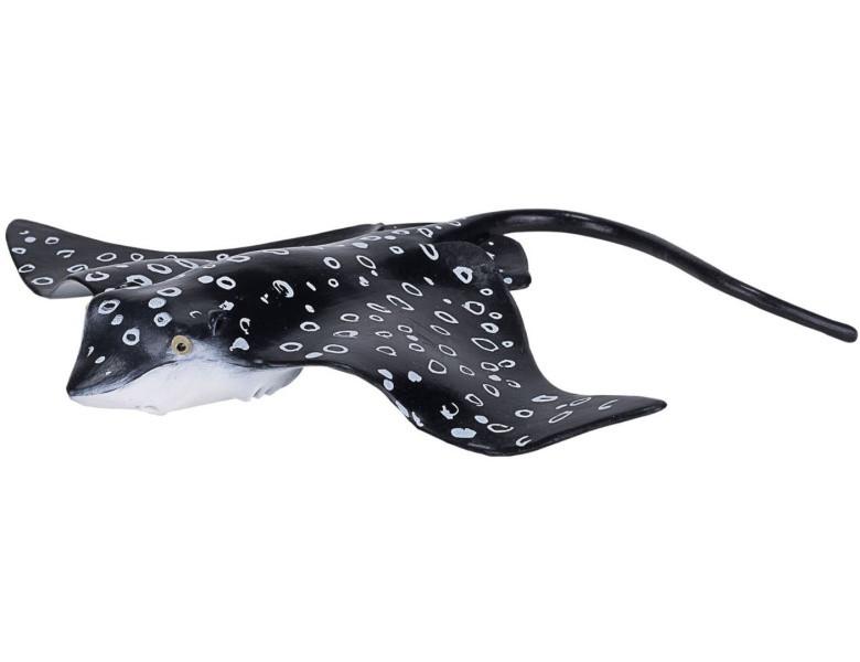 Diese detaillierte Spielfigur des gefleckten Adlerrochens besticht durch ihren flachen, scheibenförmigen Körper, der in tiefblau oder schwarz mit weissen Flecken gestaltet ist. Sie misst 16 x 14 x 1,5 Zentimeter und ist ideal für Sammler und zur spielerischen Weiterbildung über Meereslebewesen.