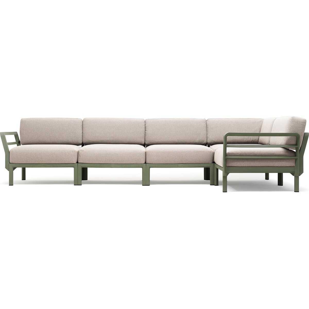 Gartenlounge Maximo vereint Eleganz und Nachhaltigkeit in einem modularen Design, das sich mühelos an Ihre individuellen Bedürfnisse anpasst. Die harmonische Farbpalette aus Grün und Beige ergänzt die natürliche Umgebung, während das innovative Befestigungssystem ohne Schrauben Flexibilität und Komfort bietet. Geniessen Sie stilvolle Entspannung mit einem Hauch von Umweltbewusstsein, perfekt für anspruchsvolle Geniesser des Outdoor-Lebens.