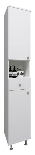 Mit insgesamt fünf Fächern und einer Schublade bietet der Badschrank ausreichend Platz für Kosmetikartikel oder weitere Badezimmerutensilien.
