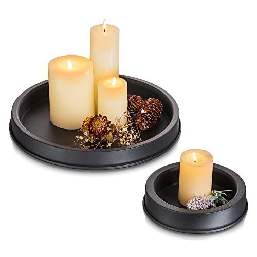 Kleines dekoratives Tablett: das kleine Holztablett hat einen Außendurchmesser von 30 cm und einen Innendurchmesser von 28 cm, ein kleiner Akzent für Tischkerzenhalter RUSTIKALES FINISH - Handgefertigtes Distressed Finish, verleiht Ihrer Wohnungseinrichtung einen rustikalen Touch, passt gut zu jeder Inneneinrichtung, wie z.B. traditionell, rustikal, Landhaus, modern, shabby, vintage und mehr Dekoratives Metalltablett: dieses Holztablett kann als schöne Dekoration für Stumpenkerzen oder kleine Pflanzen verwendet werden, oder als Küchendekoration oder als Ständer für Küchenkerzen und Blumenkübel, passt perfekt zur modernen Landhaus-Ästhetik FOAM PADDING - Die runde Kerzenschale ist auf der Unterseite mit Schaumstoff gepolstert, um Ihre Tischplatte, Kücheninsel Arbeitsplatte, ein guter Organisator für Küche oder Eingangsbereich, Couchtisch, Bad zu schützen
