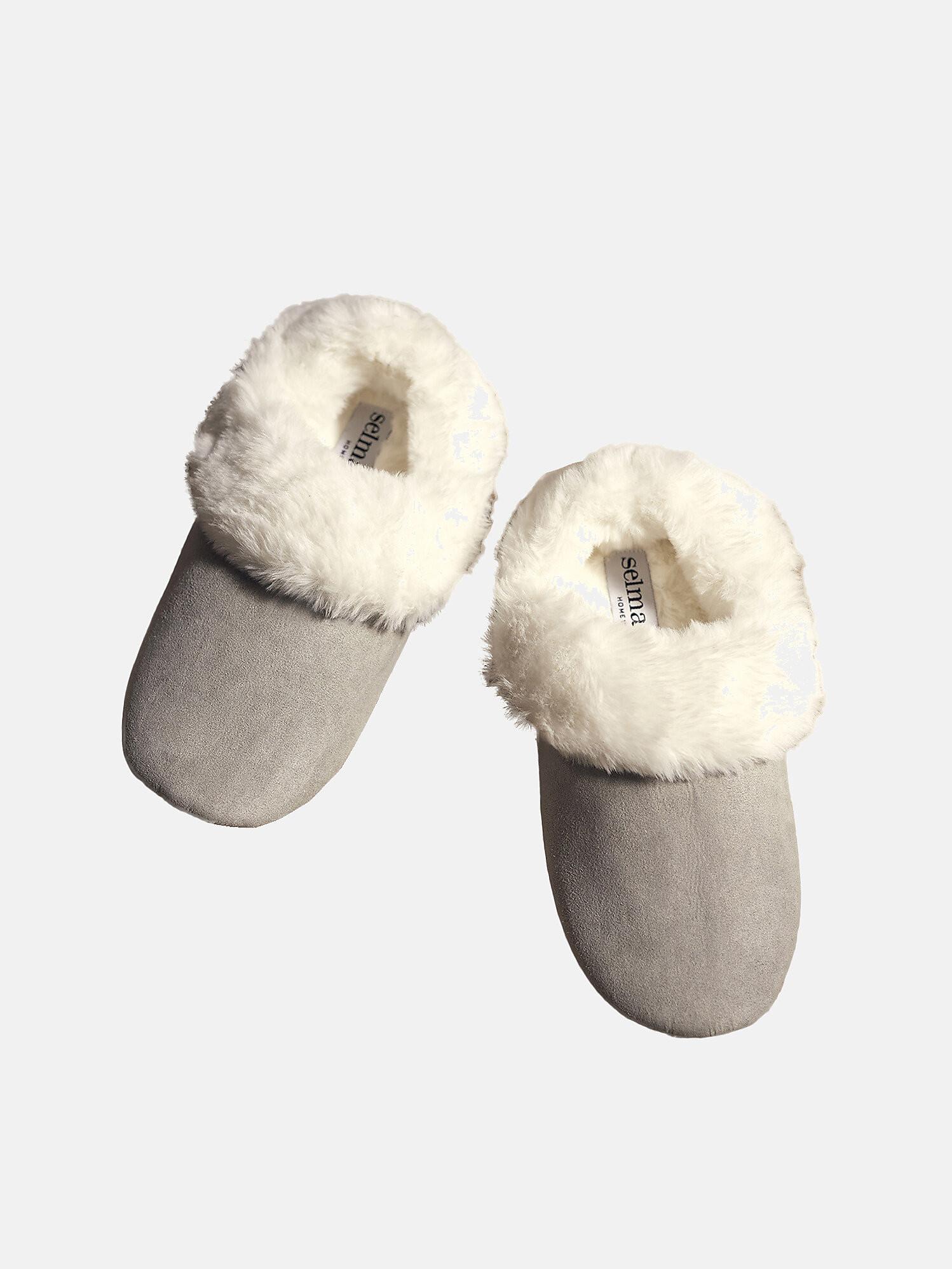 Ein Paar Hausschuhe, ideal zum Anziehen am Ende des Tages, wenn Sie nach Hause kommen: sie bringen Ihren Füßen Weichheit und Komfort, dank ihres Innenfutters aus sehr weichem und flauschigem Fleece. Sie sind leicht anzuziehen und haben eine geschlossene Ferse für einen perfekten Halt des Fußes. Die Außenseite aus samtigem Stoff fühlt sich angenehm an, ist weich und atmungsaktiv. Sie werden Ihren Füßen Wärme und Komfort bieten und lassen sich leicht mit all Ihren Hausanzügen kombinieren.