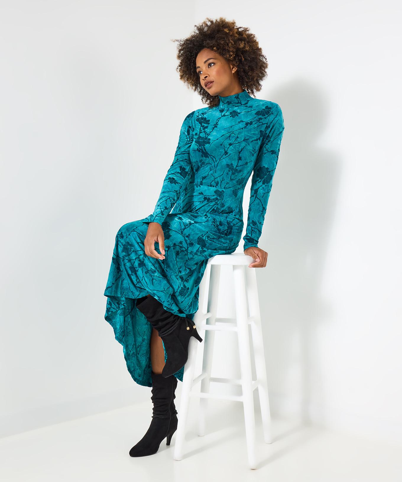 Joe Browns, Maxikleid mit hohem Kragen und Flockdruck