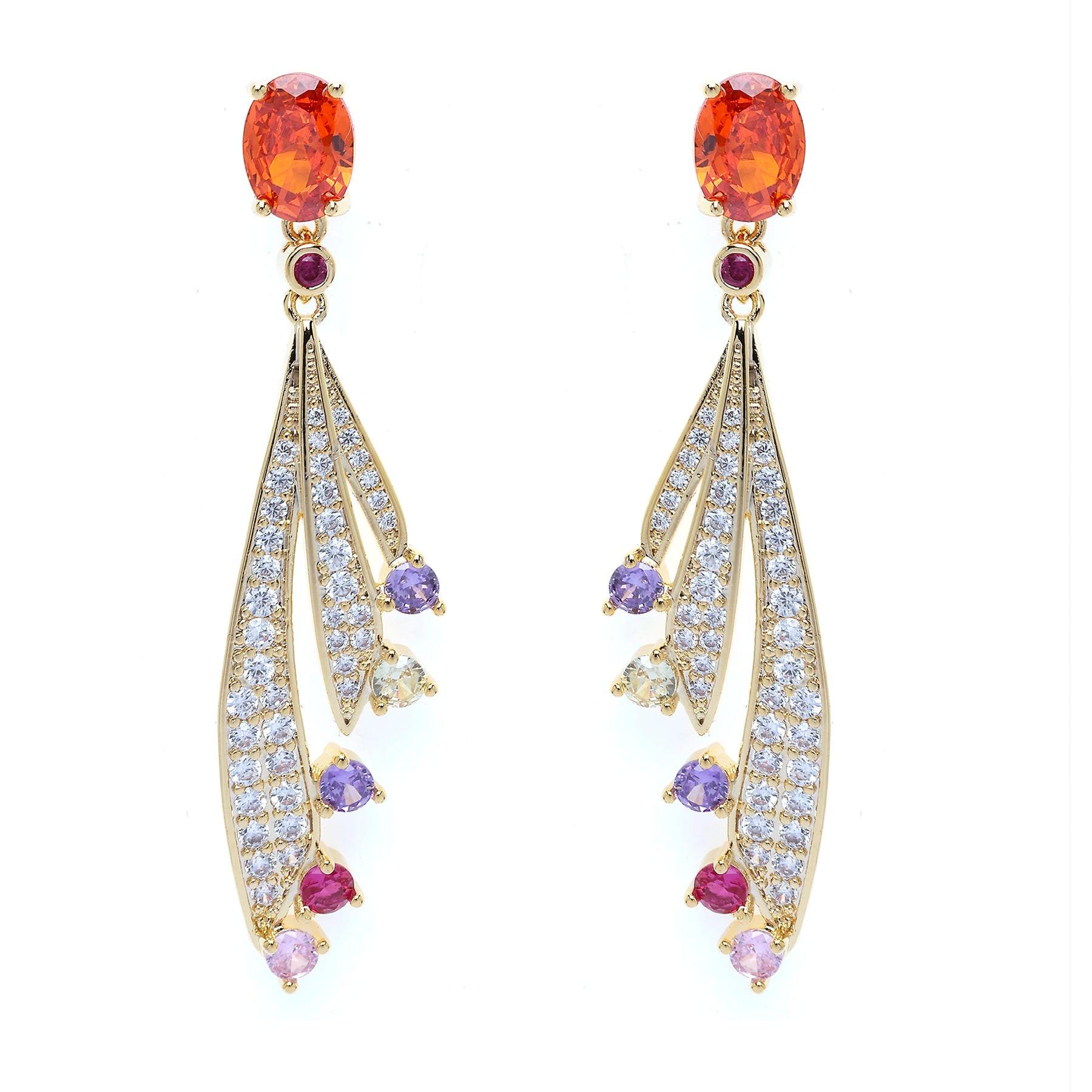 Diese goldfarbenen Ohrringe bestechen durch ihr zartes, von der Natur inspiriertes Design mit funkelnden Steinen in Rosa- und Violetttönen. Die fließende, blattartige Form verleiht ihnen eine anmutige und elegante Note und macht sie perfekt für besondere Anlässe und stilvollen Alltagslook! Größe: 0,9 cm x 4,9 cm | Beschichtung: Vergoldet | Verschluss: Stecker und Rückseite