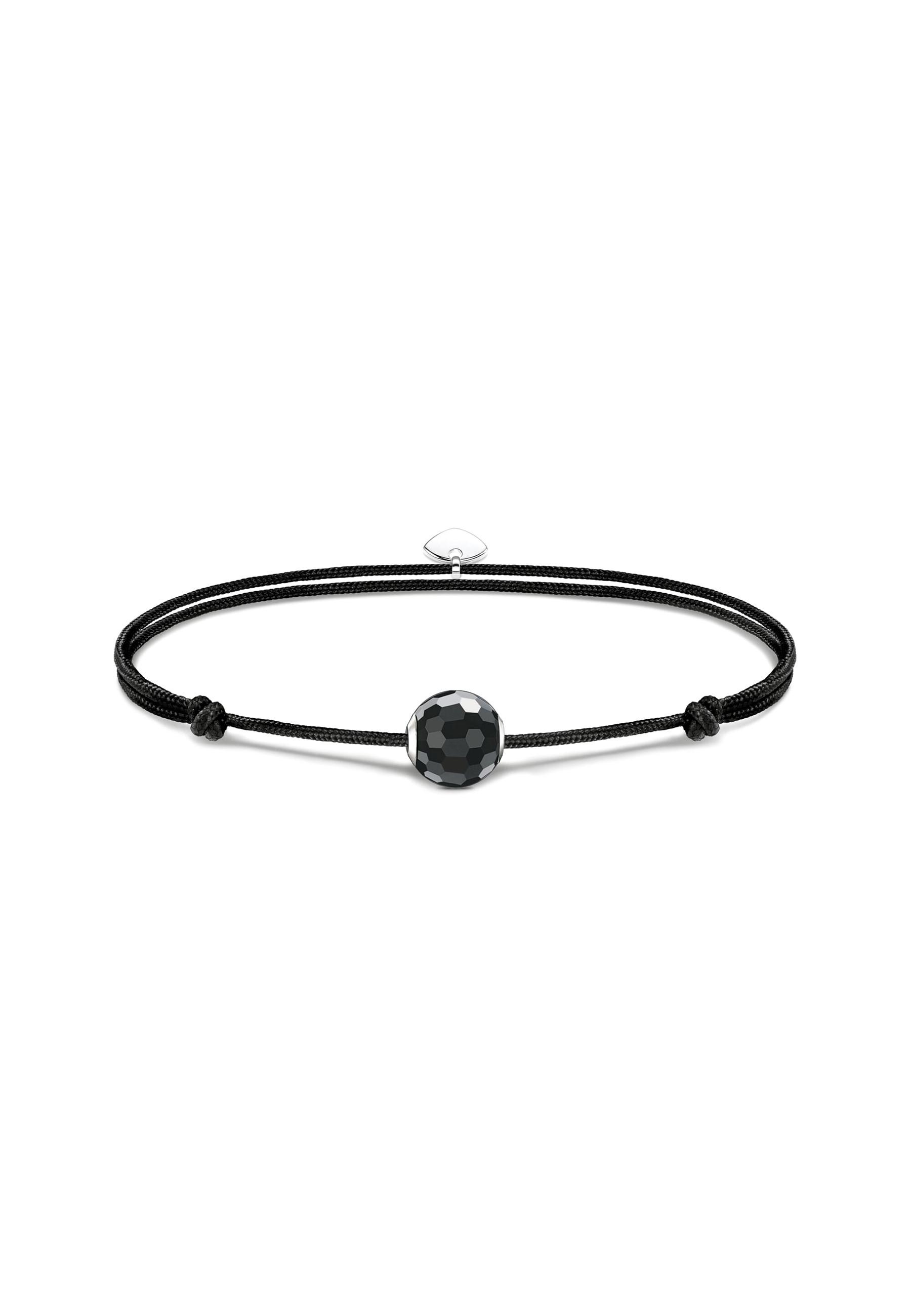 Schwarzes Textilarmband mit Karma-Perle Karma Bead aus facettiertem schwarzen Obsidian, der für Reichtum und Fülle steht Textilarmband mit individuell einstellbarer Länge