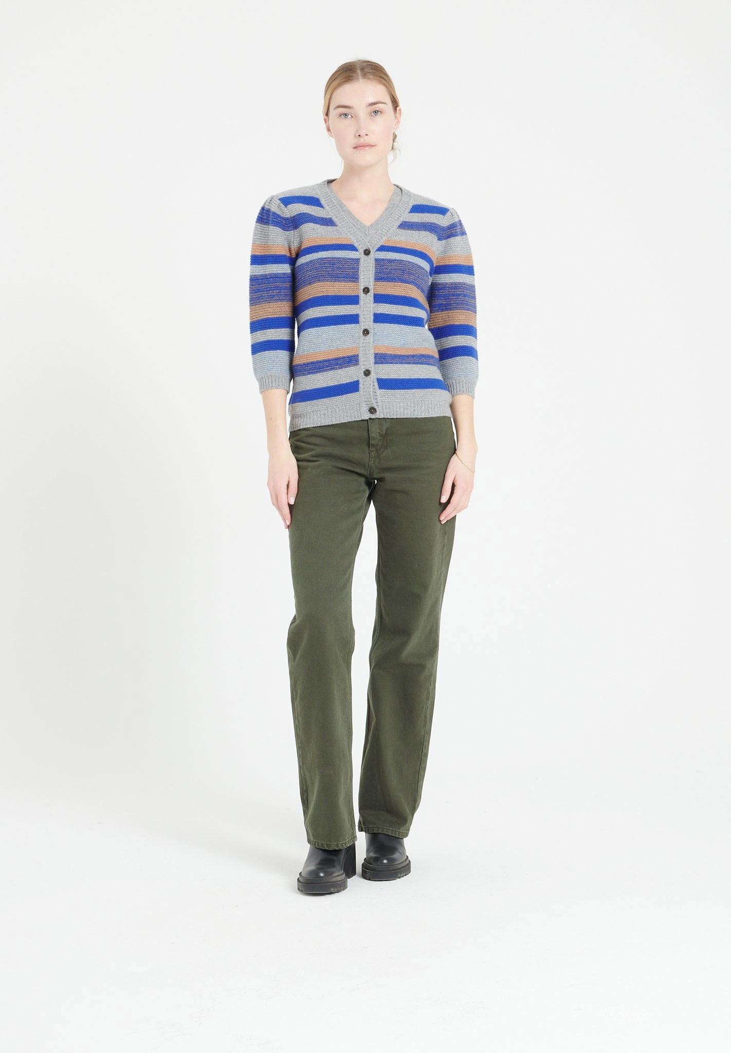 Studio Cashmere8 MIA 11 Gestreifte V-Ausschnitt Strickjacke 6 Fäden