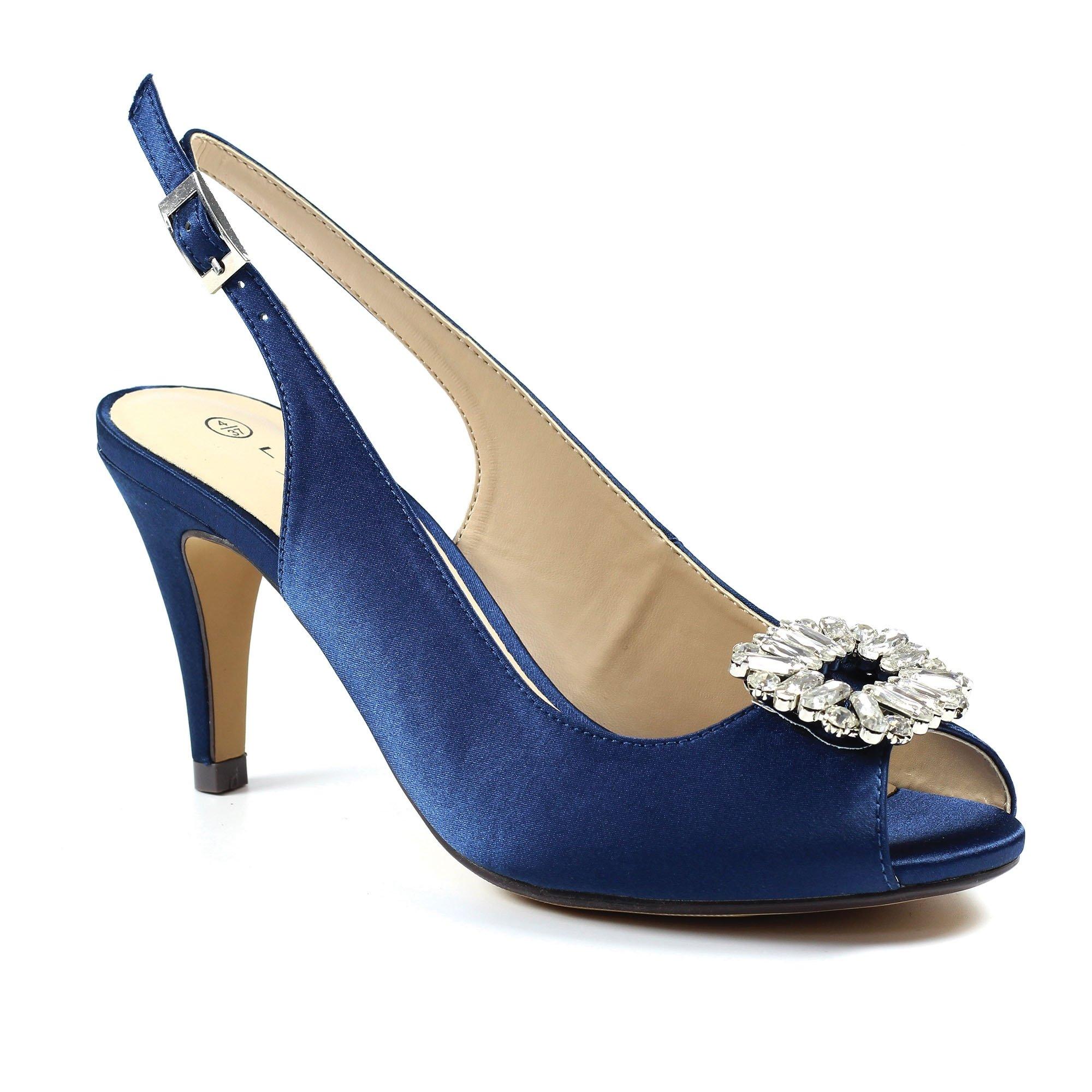 Diese eleganten Slingback-Pumps sind aus luxuriösem Satin gefertigt. Sie verfügen über eine dekorative Strassverzierung an der Spitze, die jedem Outfit einen Hauch von Glamour verleiht. Die klassische Silhouette und die raffinierten Details machen diese Pumps zu einer vielseitigen Wahl für verschiedene Anlässe.