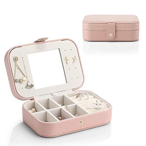 Individuelle Funktion: Schmuckkästchen für Ringe, Ketten, Ohrringe, Ohrstecker, Manschettenknöpfe und Armbänder usw. Vollständig herausnehmbare Trennwand zur individuellen Gestaltung. Auch Uhren und Lippenstift können darin aufbewahrt werden. Tragbare Größe: 16 x 11 x 5 cm - Praktisch für Reisen/Urlaub/Ausflüge. Mit ihren geringen Abmessungen passt sie gut in Ihre Handtasche oder Ihren Koffer. Geeignet für Sommerferien, Ausflüge, Übernachtungen und Geschäftsreisen Premium-Qualität: aus hochwertigem PU-Leder und mit geflochtenem Element, sieht die Schmuckschatulle sehr schön und einzigartig aus. Hergestellt aus umweltfreundlichen und guten Materialien, ist der Schmuck-Organizer sicher und robust. Das weiche Innenfutter schützt Ihre Accessoires vor täglichen Kratzern und Oxidation Große Kapazität und stützende Ohrsteckerplatte: Platz für mehr als 6 Ringe, 4 Halsketten, 22 Ohrringe/Ohrstecker, 2 Armbänder. Die stützende Ohrsteckerplatte sorgt für eine komfortable Nutzung