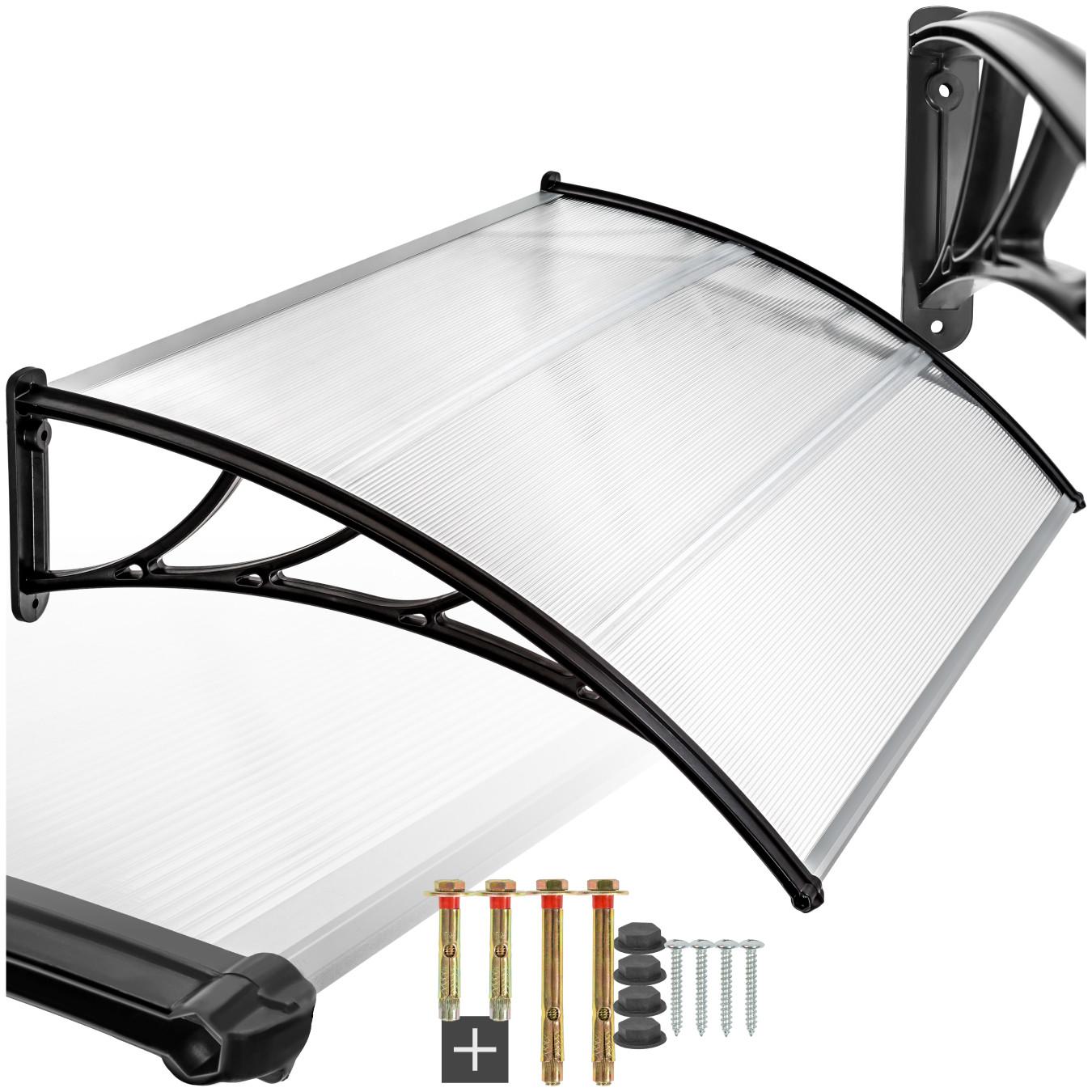 Mit diesem schönen Vordach bleibst Du nicht länger im Regen stehen. Das Haustürvordach ist schnell und einfach zu Montieren. Die aus Hartkunststoff gefertigten Träger halten jedem Wetter stand. Die Polycarbonat Überdachung ist transparent, form- und schlagfest.