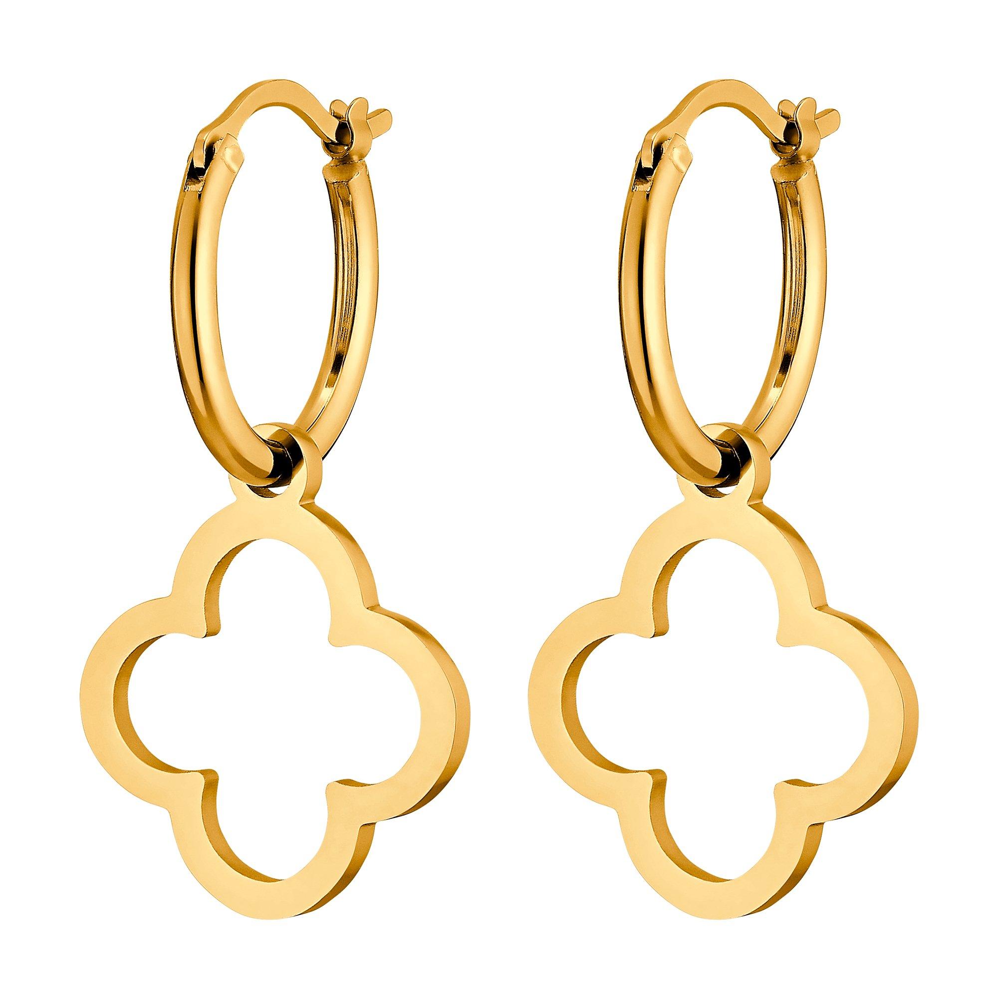 Blüte, Kleeblatt oder Kreuz? Dieses elegante Design erinnert an verschiedene Formen und steht doch für sich allein. Luftig, zart und anmutig, wird es zum dekorativen Anhänger an zarten Creolen. Übrigens: Die feinen Ohrhänger lassen sich auch wunderbar verschenken.