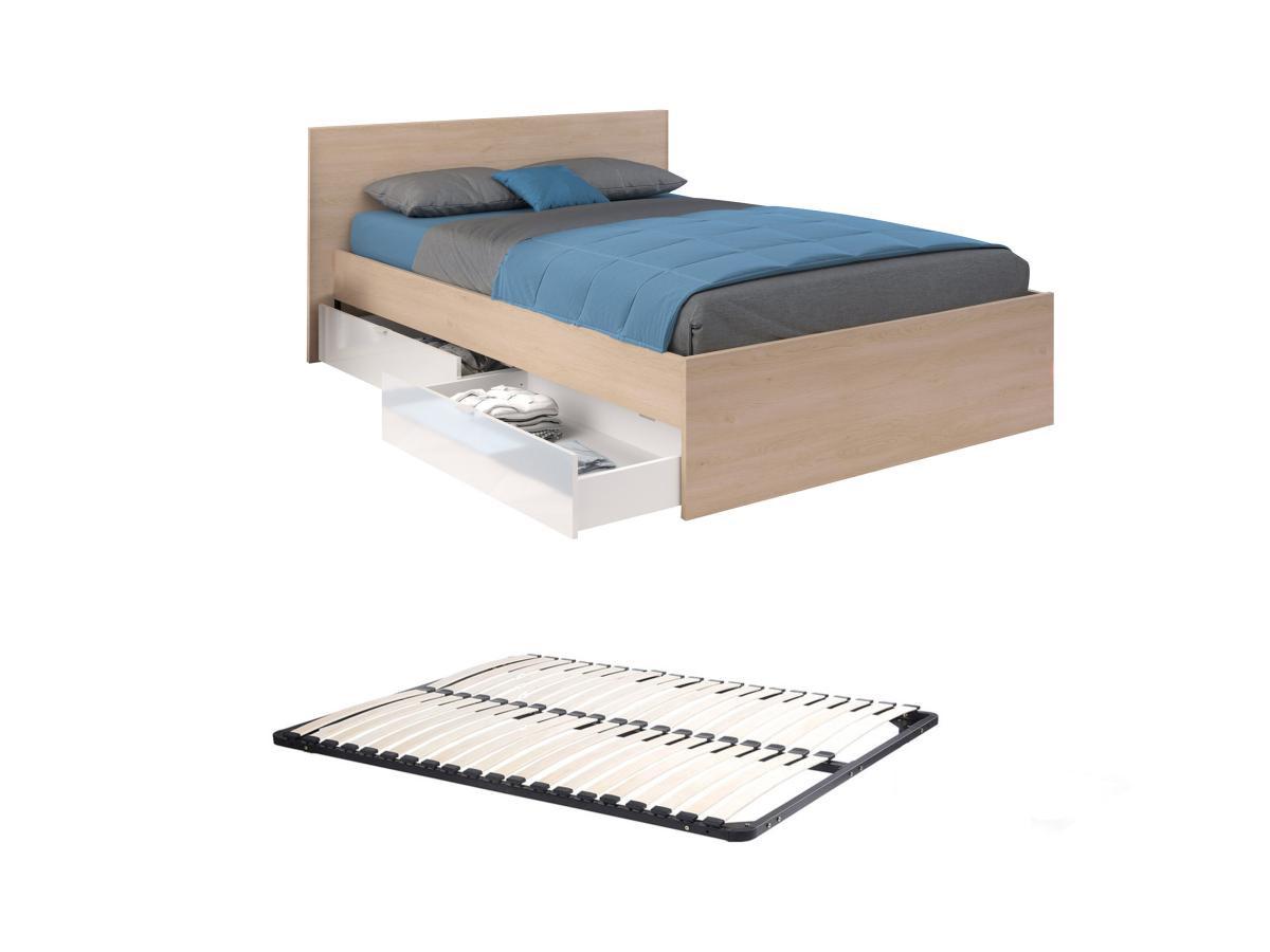 Vente-unique, Bett mit 2 Schubladen 140 x 190 cm + Lattenrost - Holzfarben & glänzend - VELONA
