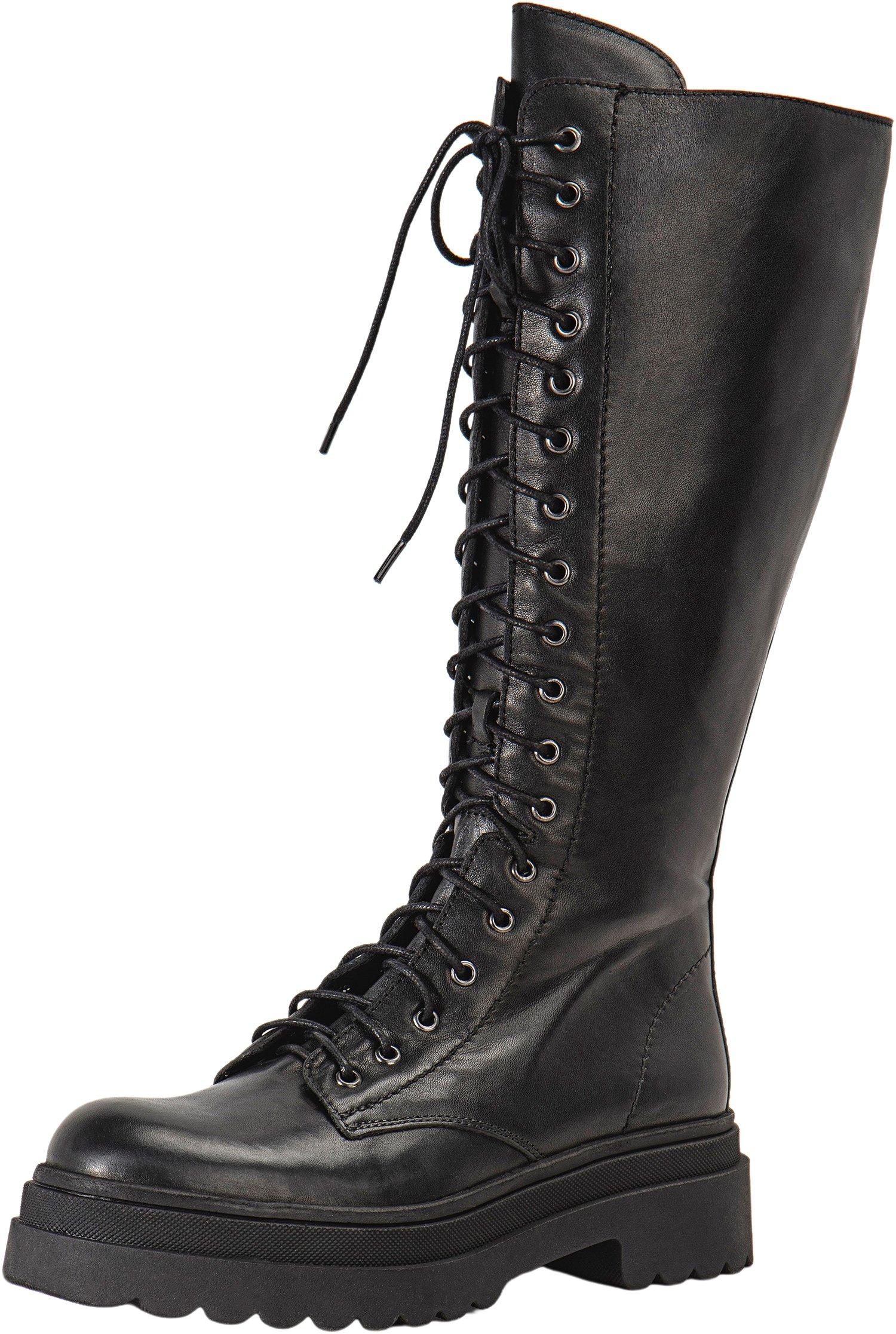 Dieser hochwertige Stiefel, aus hochwertigem Lederl, kann zu zahlreichen Outfits kombiniert werden. Der Schuh entzückt durch das Schlicht gehaltene Design. Die Laufsohle ist ein absoluter Hingucker. Obermaterial: Leder Innenmaterial: Textil Decksohle: Textil Laufsohle: Gummi