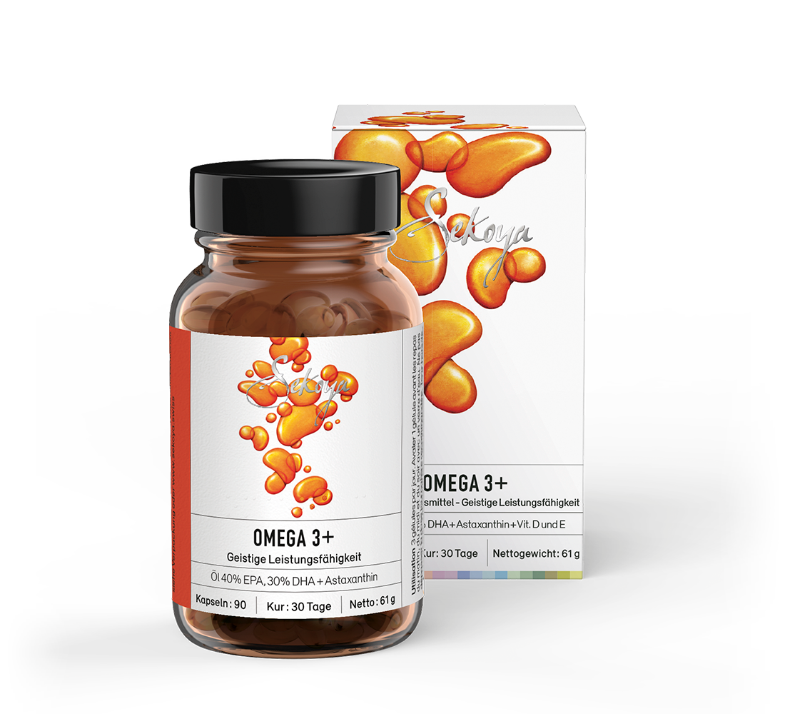 Dieses kupferfarbene Präparat ist ein einzigartiger Komplex aus Omega-3-Fettsäuren aus kleinen Fischen, die frei von Schwermetallen sind und eine natürliche Konzentration an EPA und DHA aufweisen, die für eine gute kardiovaskuläre und kognitive Funktion unerlässlich sind. Unser Omega 3+ zeichnet sich auch durch den Zusatz von Astaxanthin, einem starken Antioxidans, aus, das aus der Alge Haematococcus pluvialis gewonnen wird.