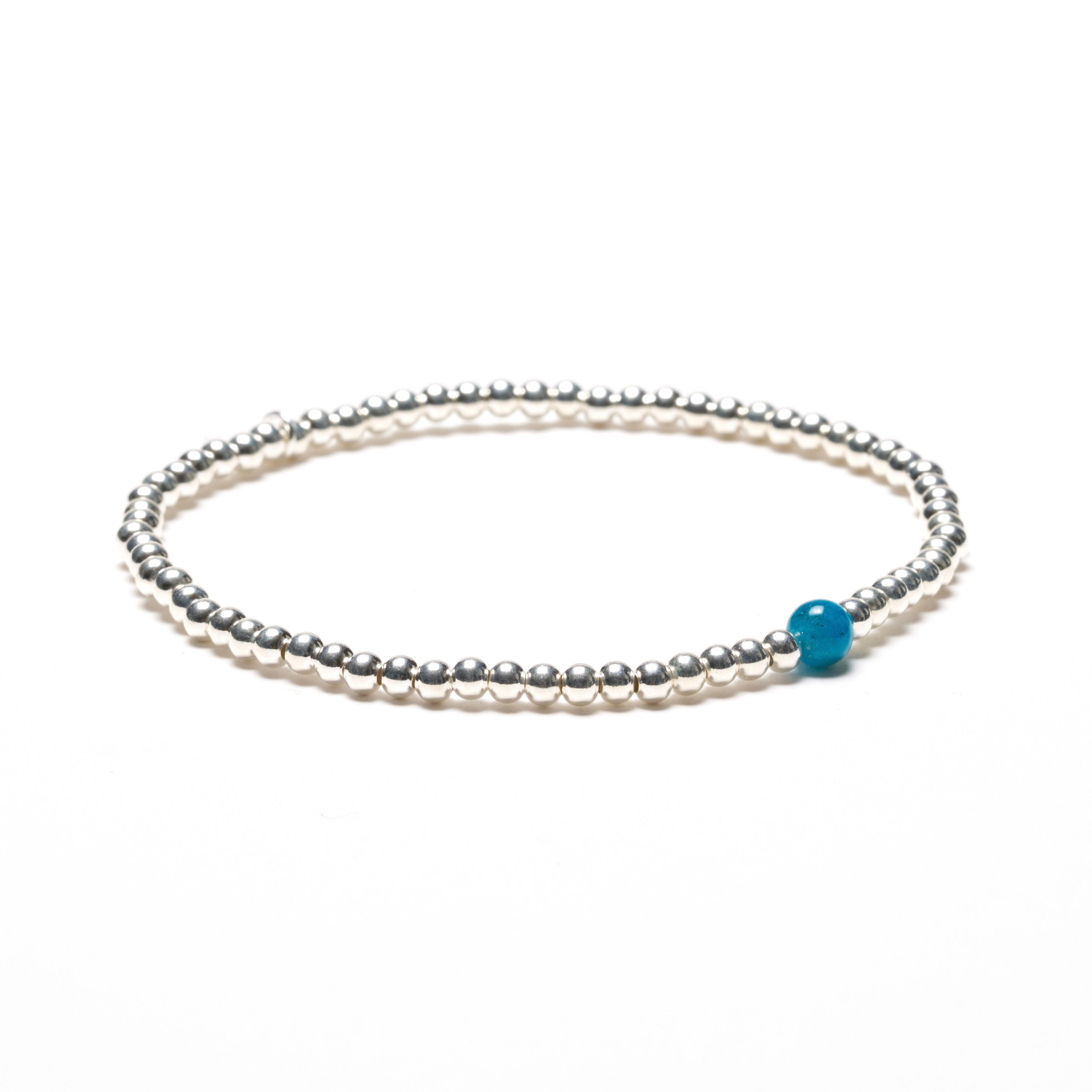 Dieses feine Stretcharmband verbindet die zarte Leuchtkraft des 4mm Apatit Edelsteins mit glänzenden Kugeln aus echtem 925 Sterling Silber. Jeder Apatit ist ein Naturwunder, einzigartig in Farbe und Struktur. Das macht jedes Armband zu einem stilvollen Unikat.