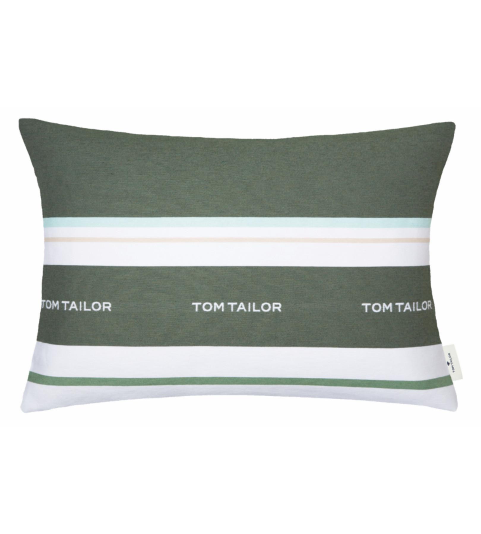 Der Tom Tailor Logo Kissenbezug präsentiert sich in einem stilvollen Streifendesign mit dem prominent platzierten Markenlogo. Dieser Kissenbezug verleiht jedem Wohnraum einen Hauch moderner Eleganz und bietet sowohl Komfort als auch einen dekorativen Akzent.