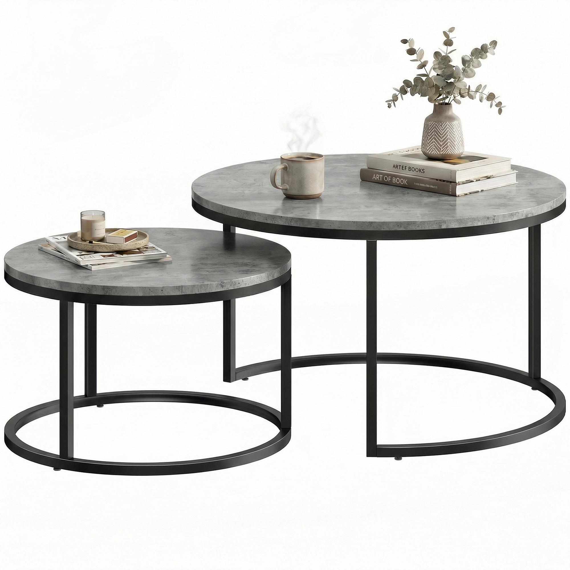 Ob auseinandergezogen oder zusammengeschoben, dieses HOMCOM Couchtisch-Set beeindruckt in Ihrem Zuhause. Es umfasst zwei Tische, die platzsparend ineinanderpassen. Das Metallgestell des Kaffeetisches sorgt für Stabilität, während die Oberflächen in Zementoptik ihren Stil und ihre Schönheit langfristig erhalten.