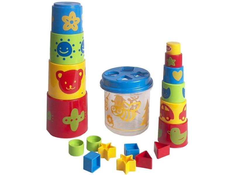 Stapeln und sortieren Diese 10 farbenfrohen Stapelblöcke werden mit einem Formensortierer geliefert, der für doppelten Spielspaß sorgt. Die abgerundeten Stapelklötze sind in der Größe abgestuft und mit Bildern versehen, die die Kleinen beim Bauen eines Turms und beim Benennen der Bilder unterstützen.