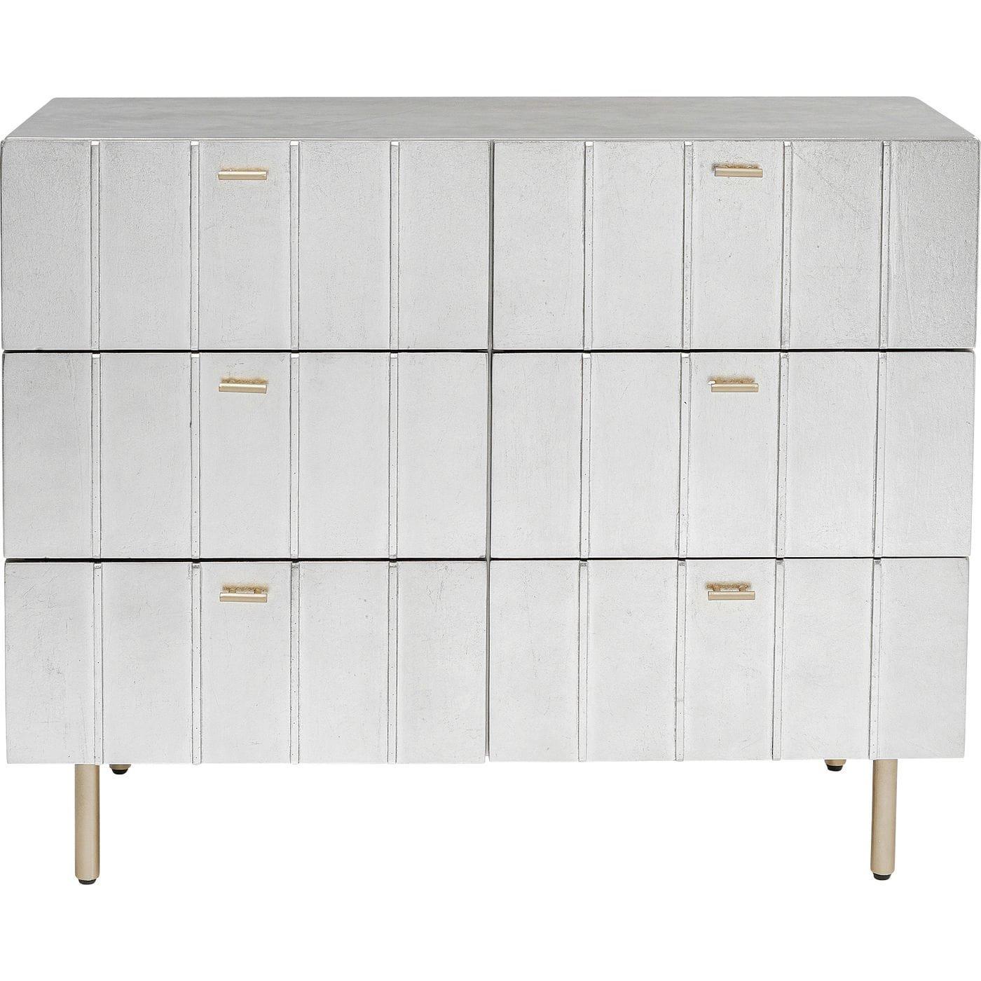 Die Kollektion Venice Line entwirft der bekannte Möbel-Designer Morten Georgsen exklusiv für KARE. Georgsen ist ein Meister darin, eine moderne und gleichzeitig zeitlose Formgebung mit einer eigenständigen Personality zu verbinden. Die Kollektion umfasst verschiedene Kommoden Modelle sowie Sideboards.Rundum silberfarben lackierte Schubladen-Kommode mit grafischem Frontdesign und minimalistischen, messingfarbenen AkzentenExklusiv für KARE entworfen vom renommierten dänischen Möbeldesigner Morten GeorgsenAufgeräumt: Die sechs grossen Schübe bieten jede Menge Stauraum in Schlafzimmer, Entree und WohnzimmerScandi Elegance: Der Schubladenschrank steht für klare Linien - und einen ganz eigenständigen LookDas matte, silbrige Finish sorgt dafür, dass diese Kommode zierlich und leicht wirktProduktinformation Korpus und Fronten: mitteldichte Faserplatte lackiert, Fuss/Füsse: Stahl lackiert, Griffe: Stahl lackiert, Lieferung teilzerlegt