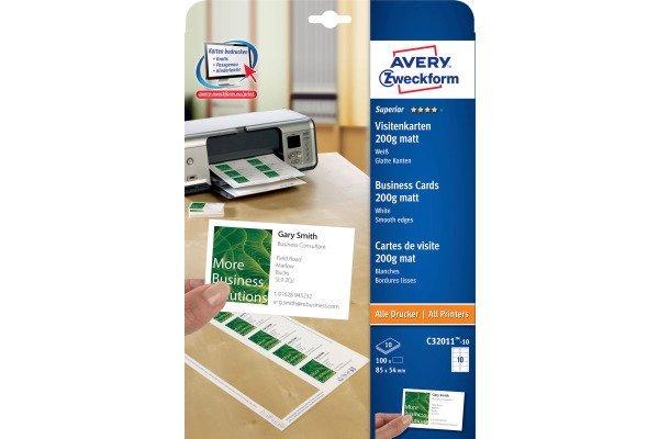 Avery-Zweckform AVERY ZWECKFORM Visitenkarten matt 85x54mm, 10Stk.