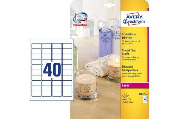 Laser- + Kopier-Etiketten - kristallklar Die durchsichtigen Etiketten aus Polyester wirken auf glänzenden Oberflächen wie direkt bedruckt. Sie sind ideal für Produkte oder Produktverpackungen aus Glas, Plastik, Metall oder anderen glänzenden Oberflächen. Zudem sind diese Etiketten von Avery Zweckform zur Beschriftung öl-, schmutz-, und temperaturbeständig und spritzwasser- und reissfest. Kostenlose Vorlagen & Software zum Bedrucken Ihrer Etiketten