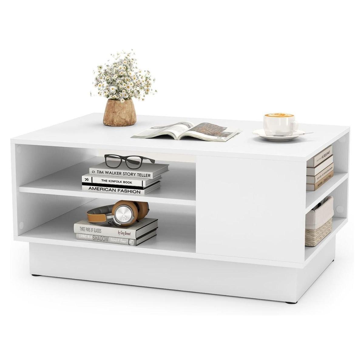 Northix Holz Couchtisch mit Stauraum & offenen Fächern Wohnzimmertisch Beistelltisch Sofatisch Weiß