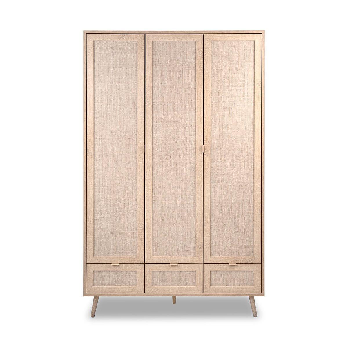 Calicosy Schrank mit 3 Türen, 3 Schubladen, 2 Kleiderstangen L120cm - Rattan-Druck - Bali