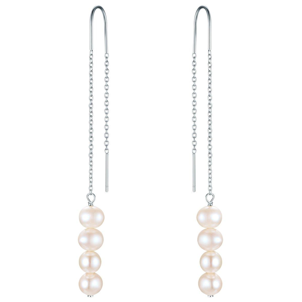 Sie tragen am liebsten besonderen, aber stilvollen Ohrschmuck? Diese Ohrhänger des Labels VALERO PEARLS bezaubern nicht nur durch den Glanz der potatoförmigen Süßwasser-Zuchtperlen, sondern auch mit einem außergewöhnlichen Design. Je vier Perlen sind an einem zarten Ankerkettchen befestigt und werden an einem Stäbchen einfach durch das Ohrloch gezogen. Ein Metallbogen sorgt für einen angenehmen und doch festen Sitz ohne Verschluss. Stäbchen und Kette sind aus 925er Sterlingsilber gefertigt und mit einer Rhodium-Veredelung vor dem Anlaufen geschützt. Ein Accessoire mit Eyecatcher-Potenzial, das garantiert jedes Outfit aufwertet!