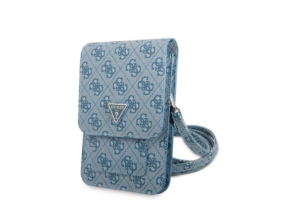 Diese Umhängetasche ist ein echtes Modeaccessoire und ermöglicht es, mit leichtem Gepäck zu reisen und trotzdem alles Wichtige mitzunehmen. Sie ist mit einer Innenfalte ausgestattet, die Zugang zu zwei Fächern bietet, in denen eine Brieftasche und ein Smartphone bequem verstaut werden können. Die Tasche zeichnet sich durch ihr zeitloses Design mit einem Guess-Logo auf dreieckigem Hintergrund und einem bestickten Kartenetui aus Leder aus.