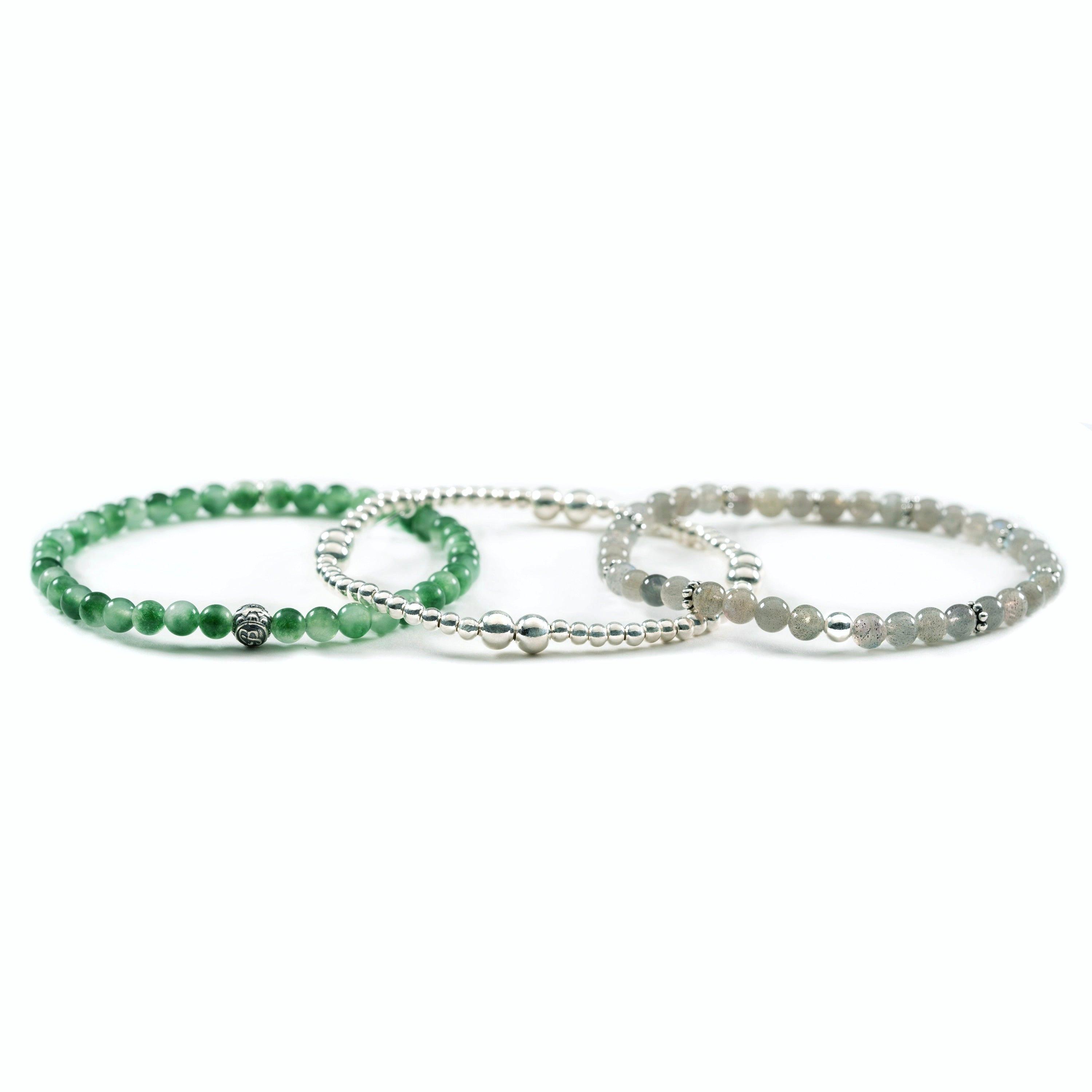 Damen-Armband-Bundle mit Labradorit, Jade & 925 Sterling Silber