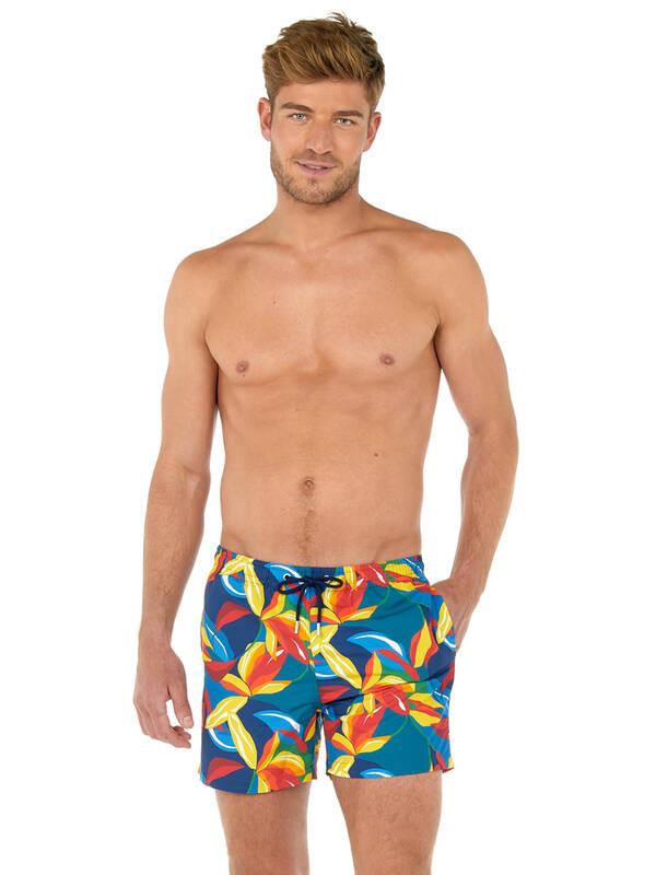 Der Keran Swim Beach Boxer präsentiert sich mit einem modischen botanischen Design und stilisierten Blättern in strahlender Farboptik. Diese Badeshorts sind für Komfort und Bewegungsfreiheit konzipiert und eignen sich ideal für Aktivitäten bei warmem Wetter.