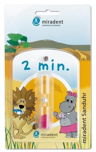 Diese praktische Uhr ist ideal zur Motivation der Zahnpflege bei Kindern. Die Sanduhr ist einfach abzulesen: Sanduhr drehen und die Zähne solange putzen bis der Sand durchgelaufen ist. Mit ihrem Saugnapf ist die miradent Sanduhr leicht auf allen glatten Flächen zu befestigen und unterstützt so die professionelle Zahnpflege von Kindheit an.
