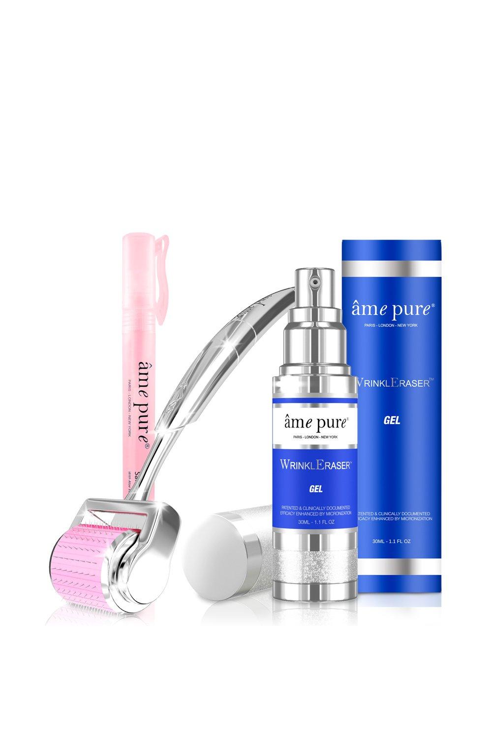 âme pure WrinklEraser BASIC- Schnellwirkenden Derma Roller Behandlung: anti-aging WrinklEraser Gel + Microneedling Face Roller + Sanitizer Spray
