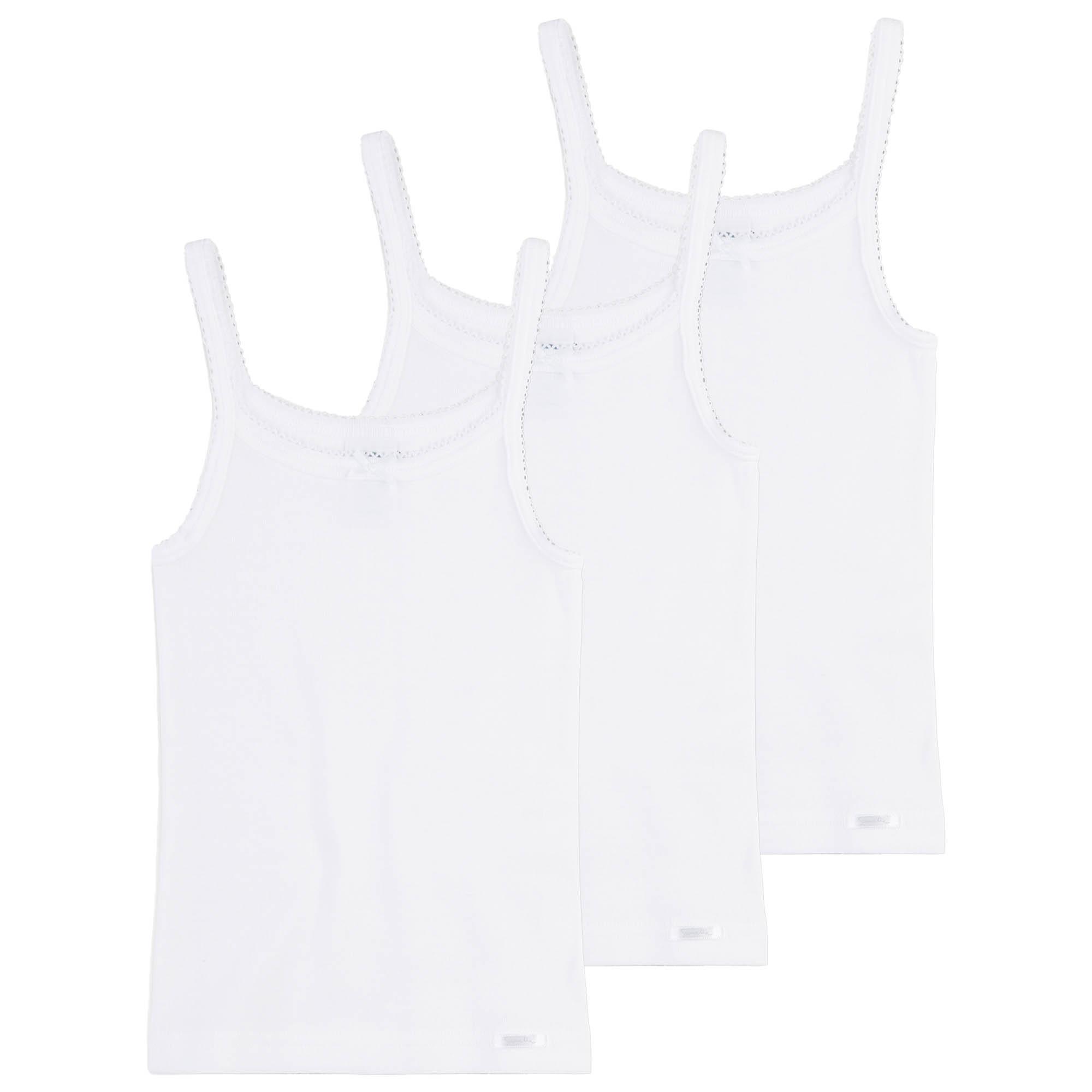 Unterhemden für Mädchen von der Marke Sanetta im praktischen 3er Pack. Angenehmer Tragekomfort dank Baumwolle aus kontrollierten biologischen Anbau.