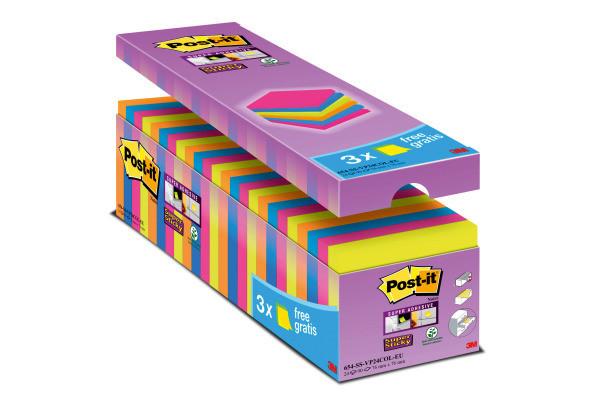 SUPER STICKY - Notes Ob im Büro oder Alltag: Von den extra zuverlässigen Post-it® Super Sticky Notes sollten Sie immer genügend zur Hand haben. Die smarten Haftnotizen zeigen dank des speziellen Post-it® Super Sticky Haftklebers superstarke, lange Haftkraft ? auch auf schwierigen Oberflächen, wie z.B. Monitore, Telefone, Türen oder Griffe von Einkaufswagen. Post-it® Super Sticky Notes sind ohne Rückstände ablösbar und haften immer wieder. Extrastarke Haftung: Dank speziellem Klebstoff haften die Post-it® Super Sticky Notes sicher auf praktisch allen Oberflächen wie z.B. Monitore, Telefone, Türen oder Griffe von Einkaufswagen. Praktisch für Büro, Schule und Alltag: Post-it® Super Sticky Notes helfen Ihnen beim Übermitteln von Nachrichten für Kollegen oder dienen als Memo am Monitor. Haften immer wieder: Post-it® Super Sticky Notes sind ohne Rückstände ablösbar und haften immer wieder. Der Umwelt zuliebe: PEFC zertifiziertes Papier
