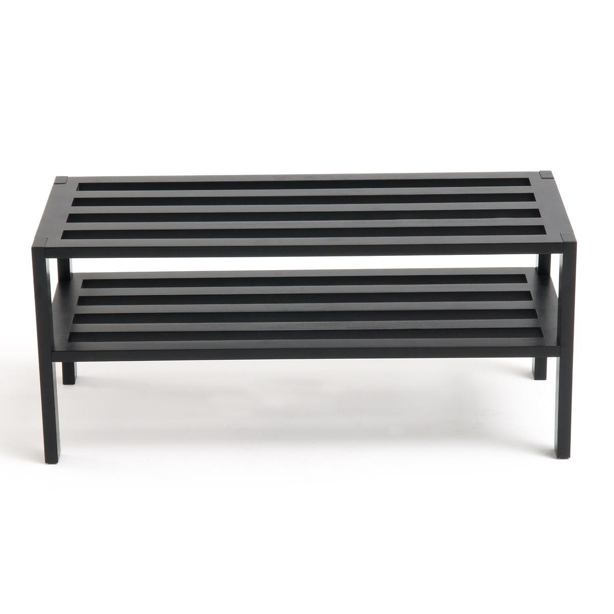 Schuhregal mit 2 Böden aus schwarz lackiertem Birkenholz. Das Schuhregal ist nur 34 cm tief und passt damit sogar in den Kleiderschrank!