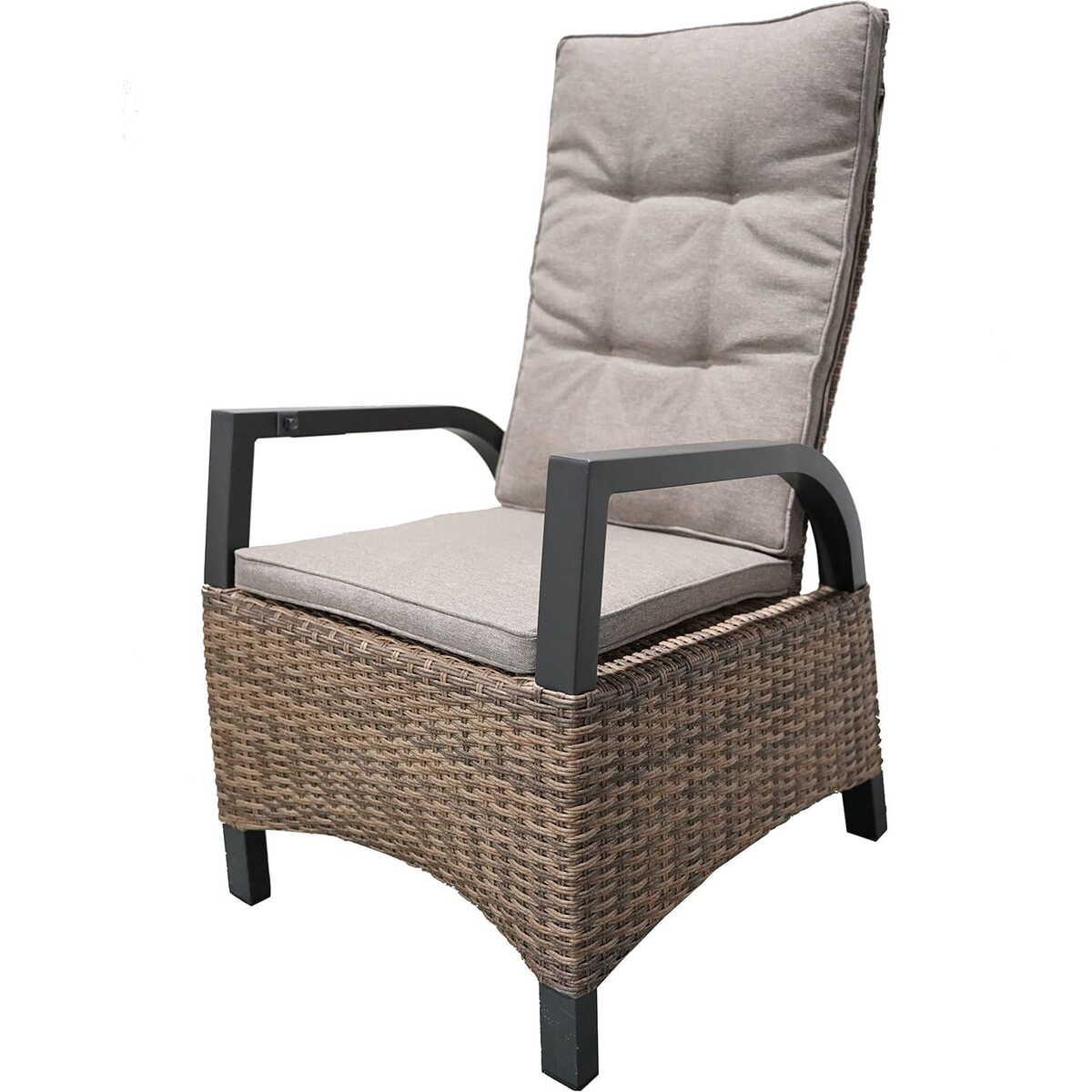 Eleganter Stuhl mit verstellbarer Rückenlehne Armlehnen für zusätzlichen Komfort Einzelner Sitzplatz für optimale Entspannung Ein beigefarbenes Kissen für zusätzlichen Komfort Maximale Belastbarkeit von bis zu 120 kg Ausgezeichnete Langlebigkeit und Robustheit Modernes Design mit hochwertigen Materialien