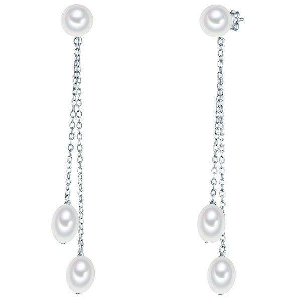 Sie tragen gerne zarten und zeitlosen Perlen-Ohrschmuck? Dann werden Sie diese Ohrringe des Labels VALERO PEARLS sofort in Ihr Herz schließen. Je zwei Süßwasser-Zuchtperlen baumeln an filigranen Kettchen aus rhodiniertem Sterlingsilber an Ihrem Ohrläppchen. Ein praktischer Steckverschluss an einer dritten Perle sorgt für einfaches An- und Ablegen. Jede Perle des exquisiten Trios ist handverlesen, mit makelloser Oberfläche und einem grandiosen Lüster. Ein tolles Geschenk für Perlen-Liebhaberinnen, die den Kontrast zwischen edlem Perlenglanz und mit kühlem Edelmetall mögen!
