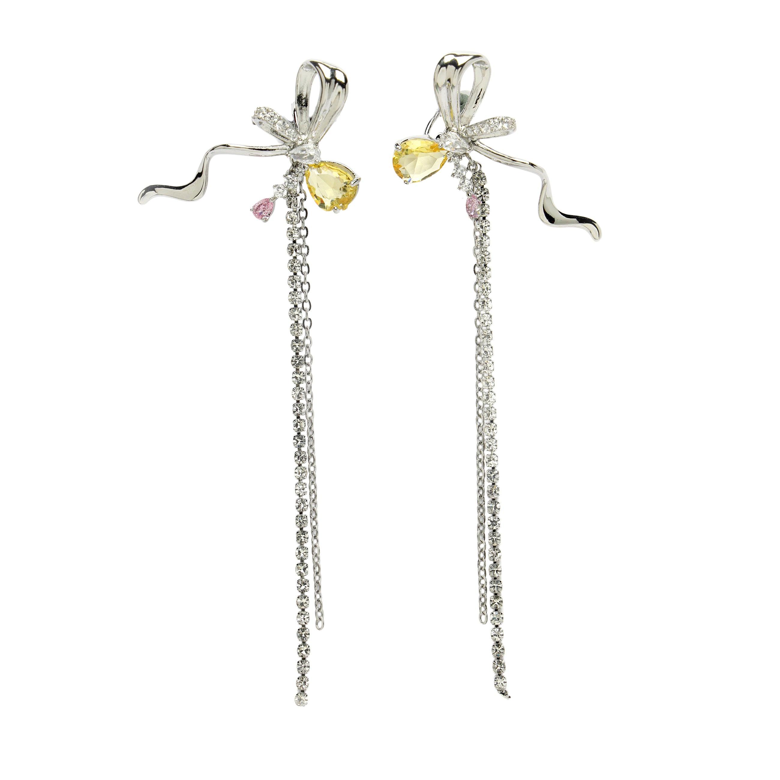 Verschönern Sie sich mit dem anmutigen Charme dieser Ohrringe mit Schleifenkette – eine bezaubernde Kombination aus Weiblichkeit und Eleganz. Die Kette schwingt sanft und erzeugt so eine subtile Bewegung, die dem Design eine besondere Anziehungskraft verleiht. Diese Ohrringe mit Schleifenkette sind perfekt für legere und formelle Anlässe und ergänzen jedes Outfit mühelos. Sie verleihen jedem Look einen Hauch von femininer Anmut und Raffinesse. Größe: 2,5 cm x 10,0 cm | Beschichtung: Rhodiumplattiert | Verschluss: Stecker und Rückseite