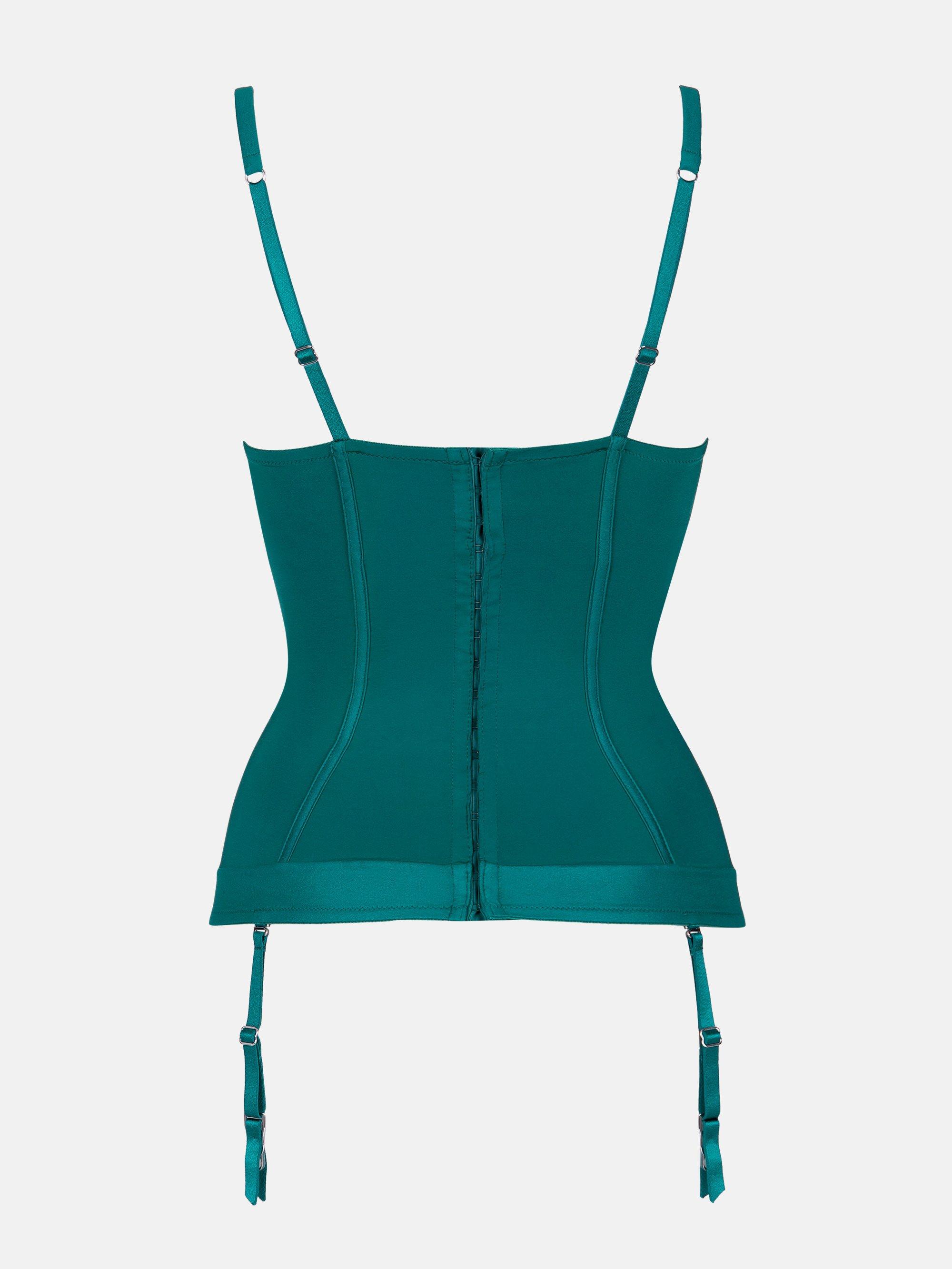 Dieses vorgeformte Bustier aus der Illusion-Kollektion eignet sich für den Alltag und besondere Anlässe. Dekorative Paspeln entlang der Büste verfeinern die Figur, während transparente Einsätze und luxuriöse Stickereien am Dekolleté den Look aufwerten. Es verfügt über eingebaute, verdeckte Schaumstoff-Cups mit lederähnlichem Stoffbesatz und abnehmbare Strumpfhalter.